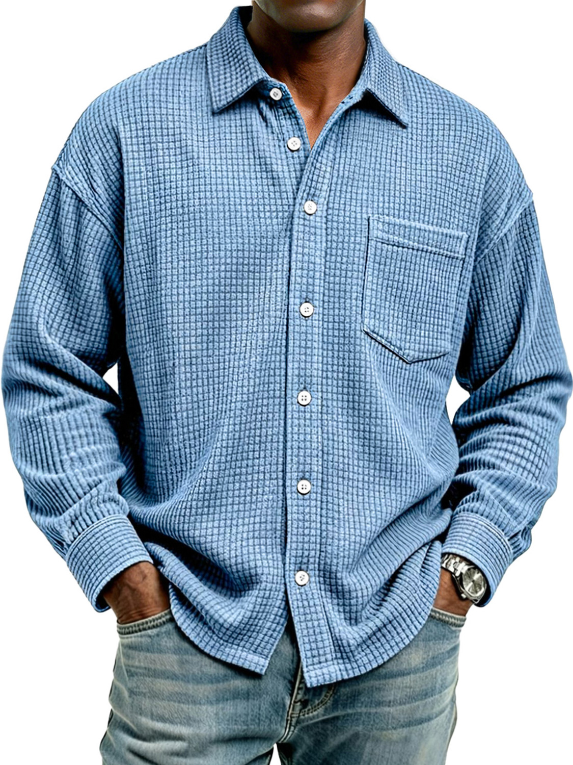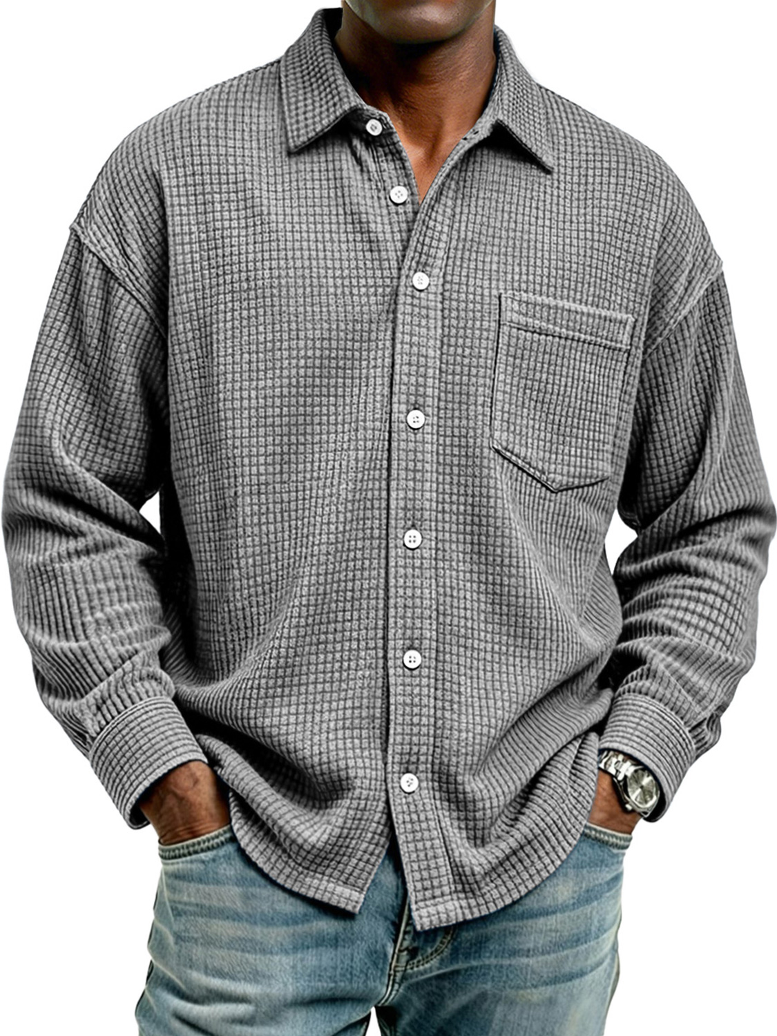 Men's vintage corduroy comfortable loose-fitting button-down long-sleeved shirt