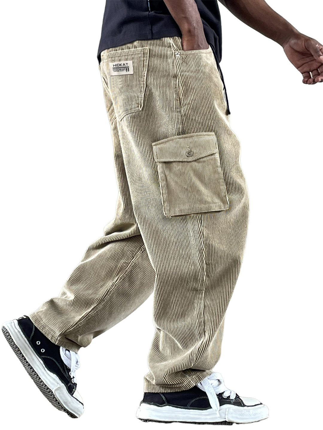 Men's Vintage Multi-Pocket Corduroy Workwear Trousers with Embroidered Label