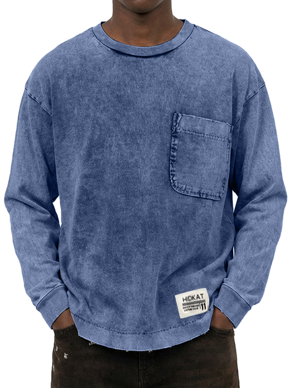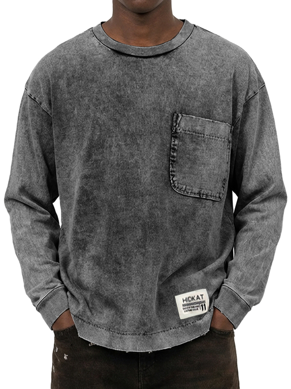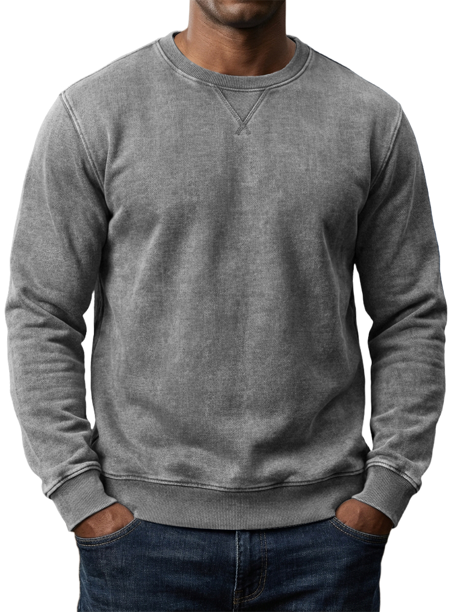 Men's Washed and Distressed Cotton Retro Crew Neck Long-Sleeve Sweatshirt