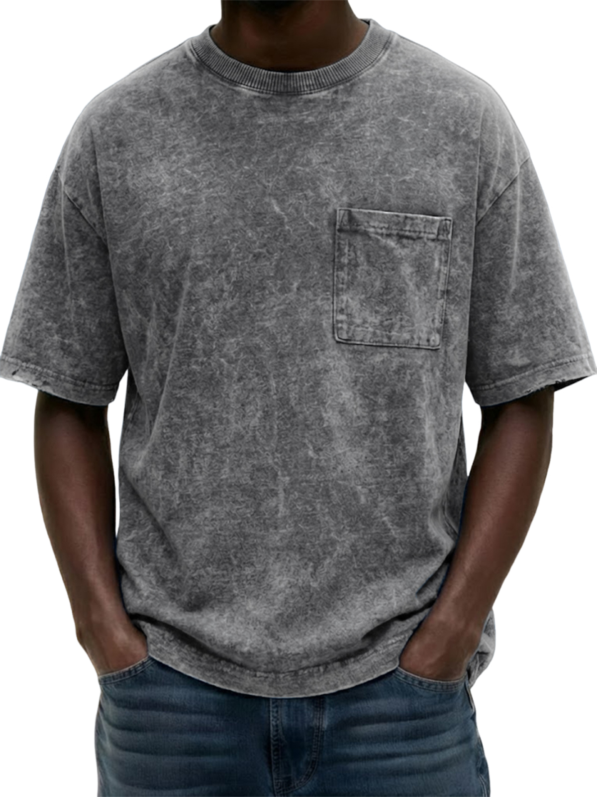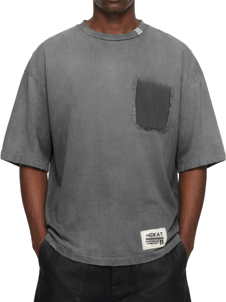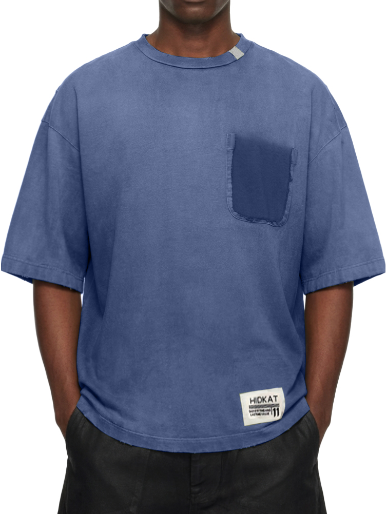 Men's Washed Distressed Cotton Retro Crew Neck Pocket Short-Sleeve T-Shirt