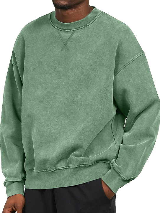 Men's Vintage Washed Distressed Crew Neck Cotton Long-Sleeve Sweatshirt