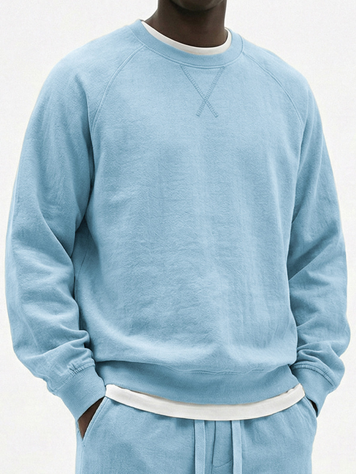 Men's Vintage Heavyweight Terry Cotton Washed Raglan Crewneck Sweatshirt with Embroidered Patchwork