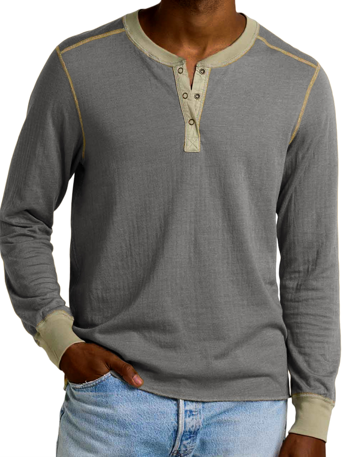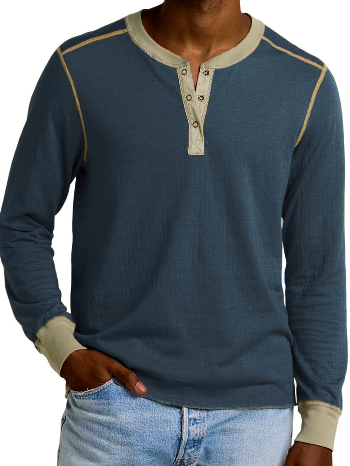 Men's Stylish Vintage Color-blocked Collar Pullover Henley Top