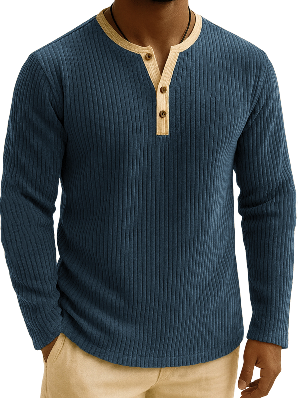 Men's Stylish Corduroy Ribbed Color-Block Henley Shirt