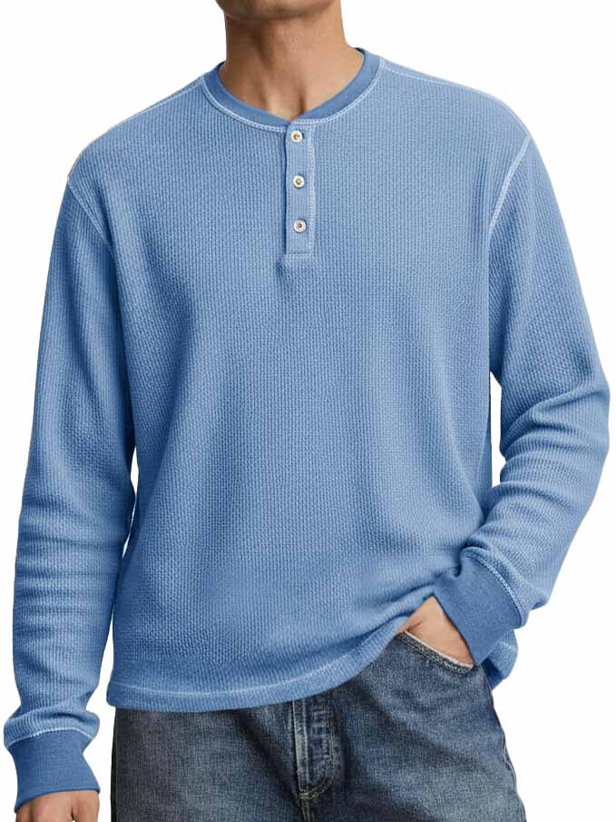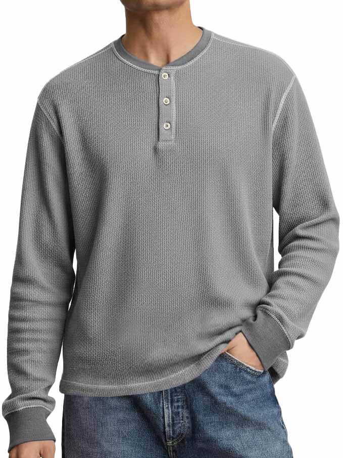 Men's Vintage Waffle Knit Long-sleeved Henley Shirt