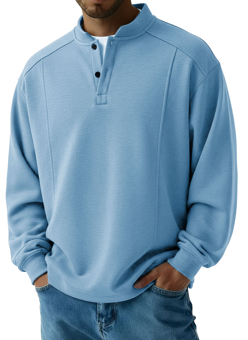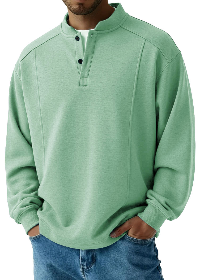 Men's Retro Solid Color Casual Loose Henley Sweatshirt