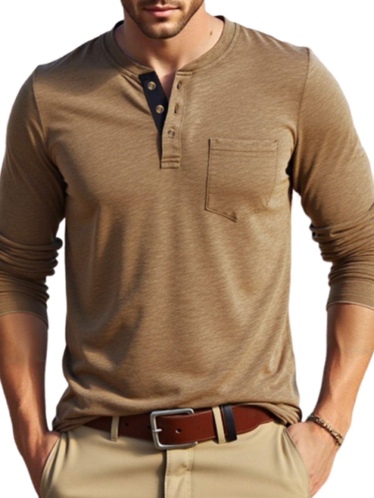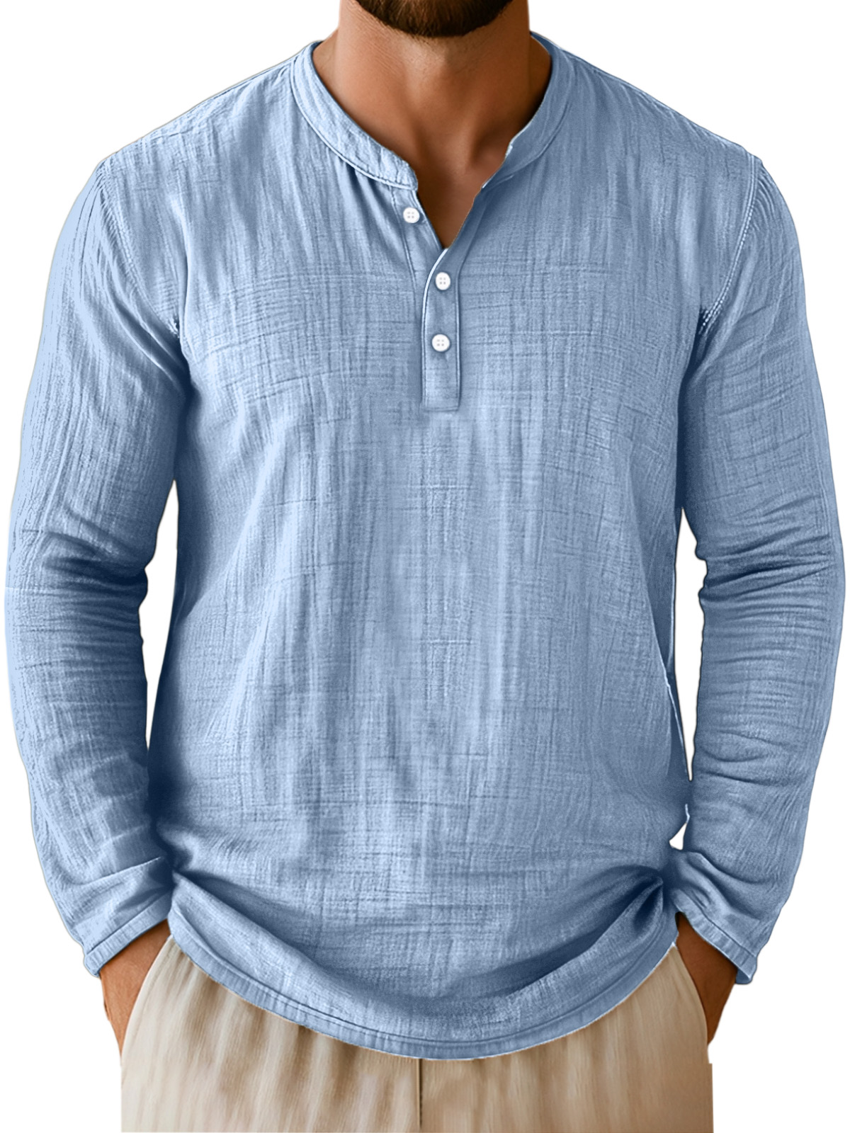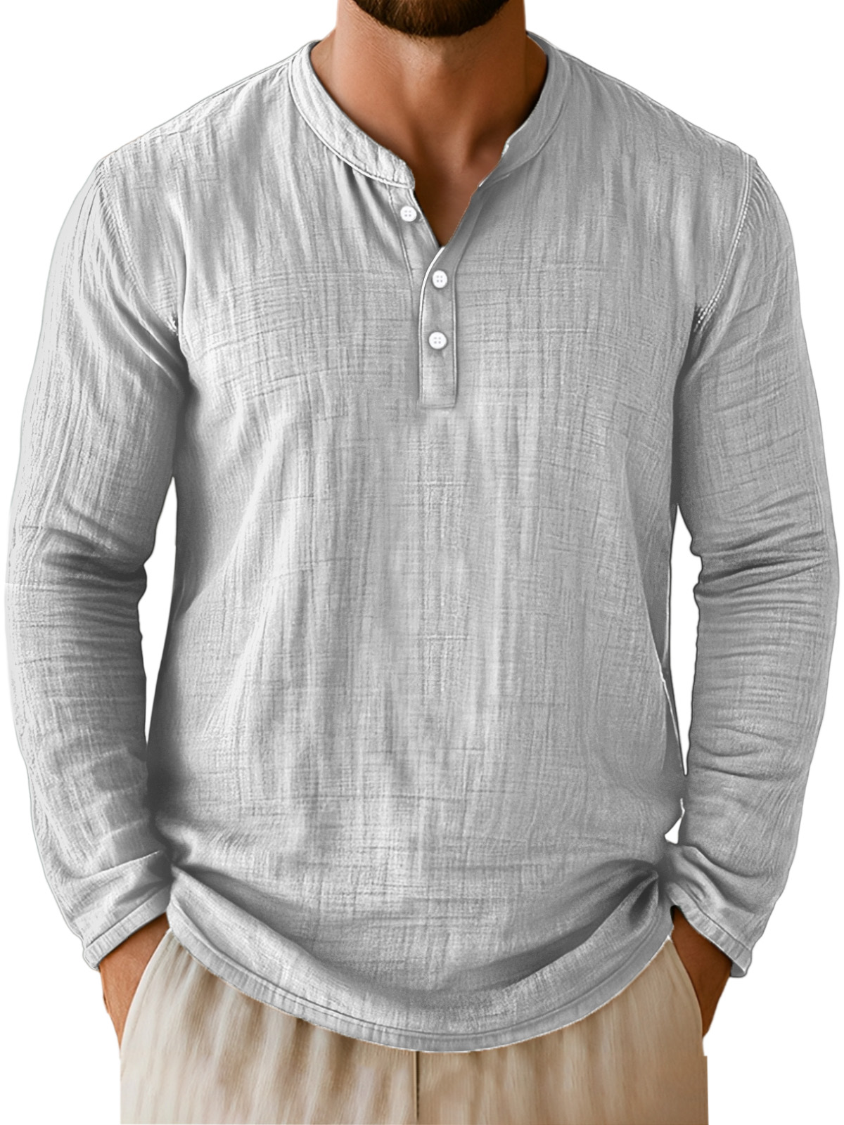Men's Fashion Casual Limna Fabric Long-sleeved Henley Shirt