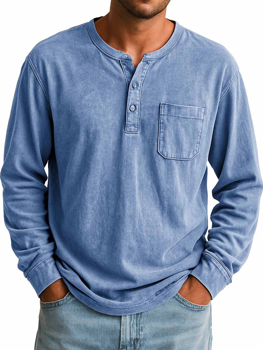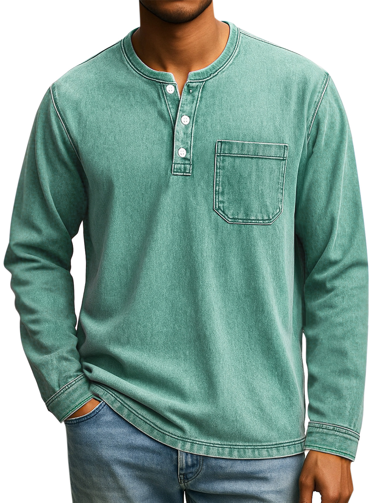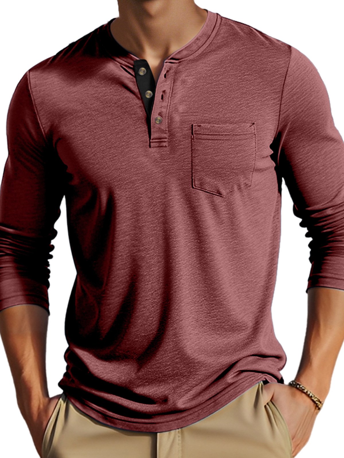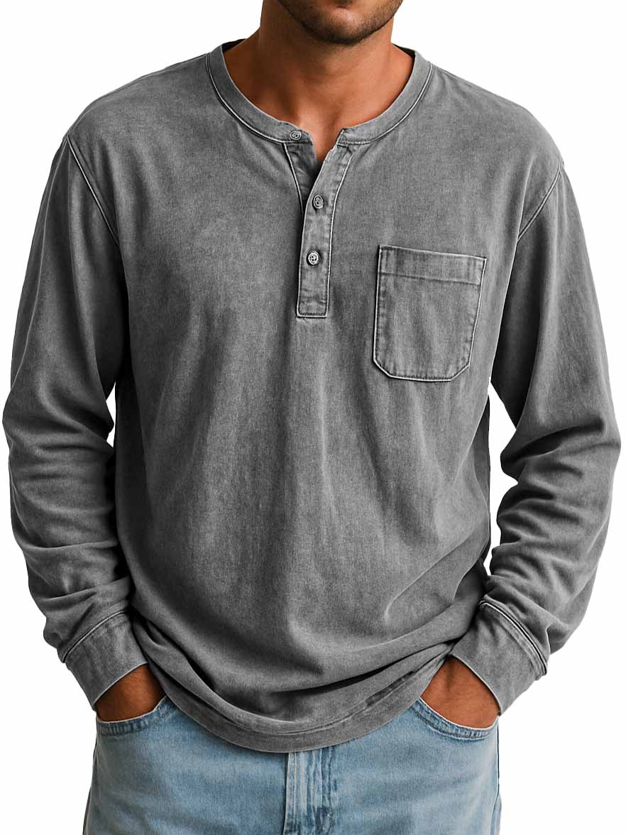 Men's Vintage Everyday Casual Pocket Long Sleeve Henley