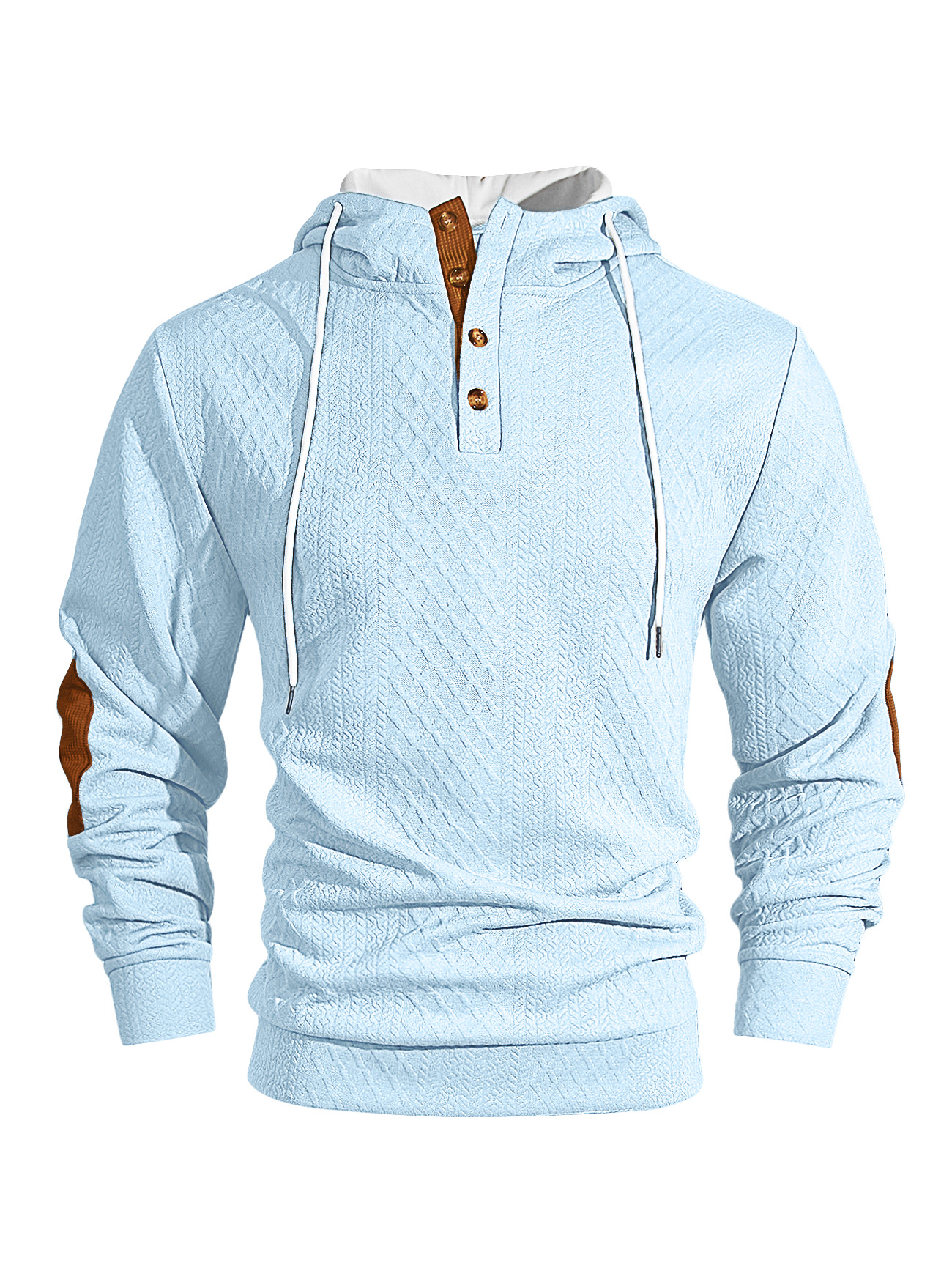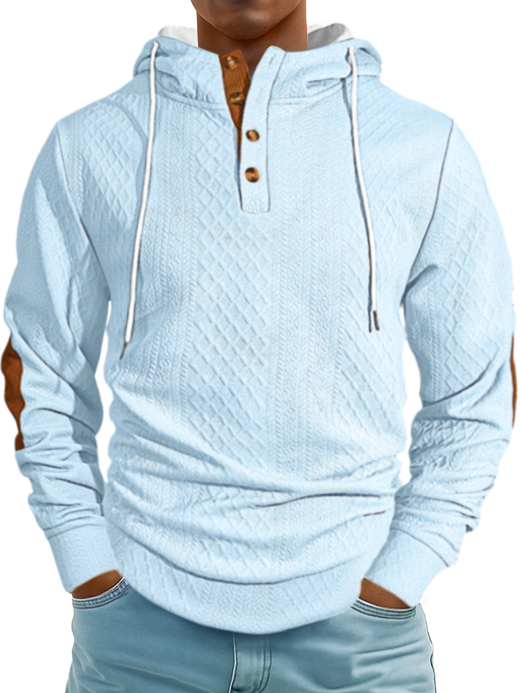 Men's Casual Jacquard Fabric Buttons Long-sleeved Hoodie