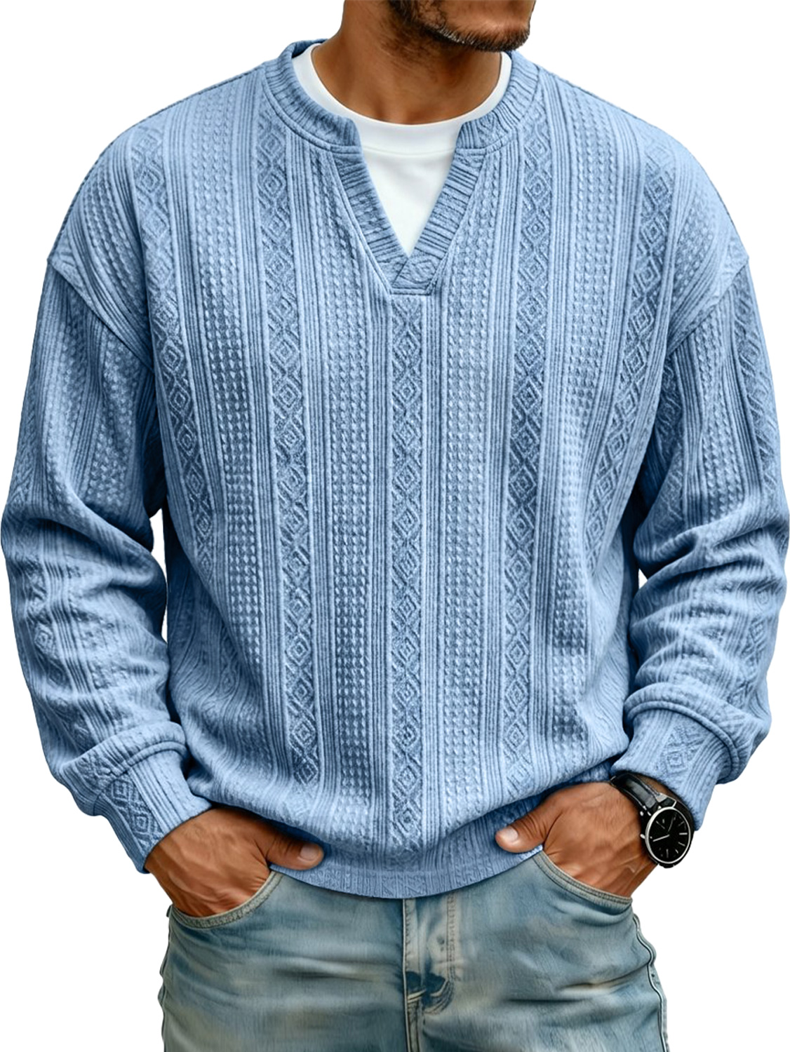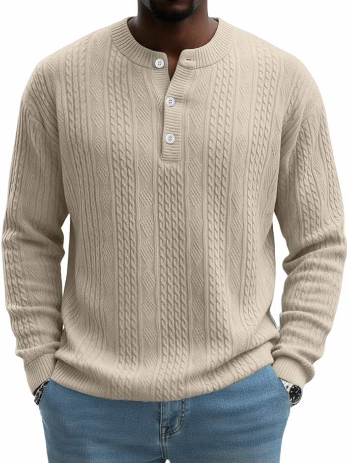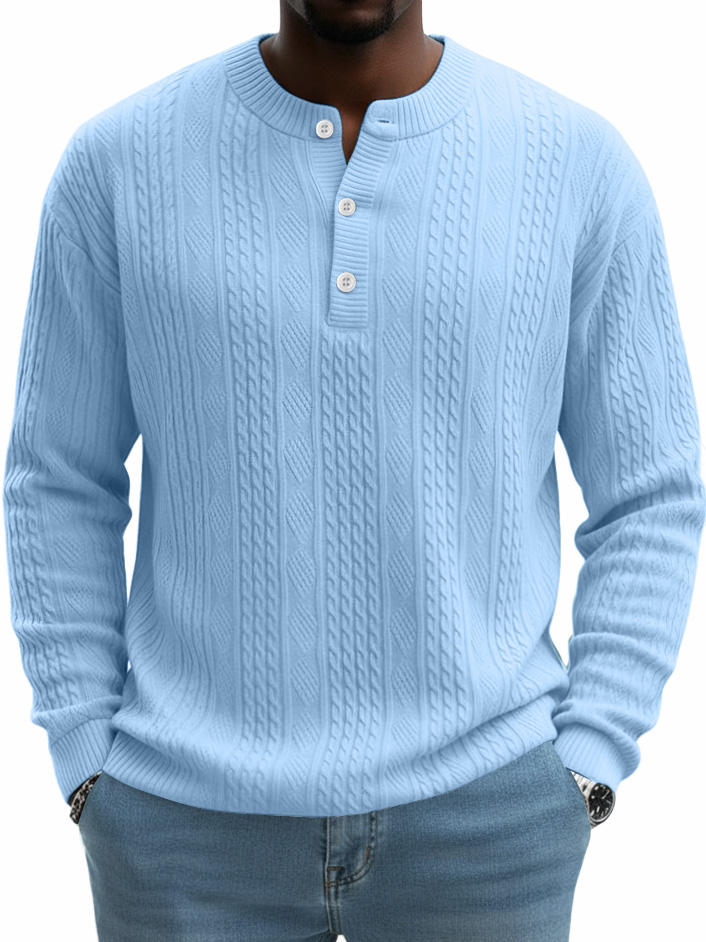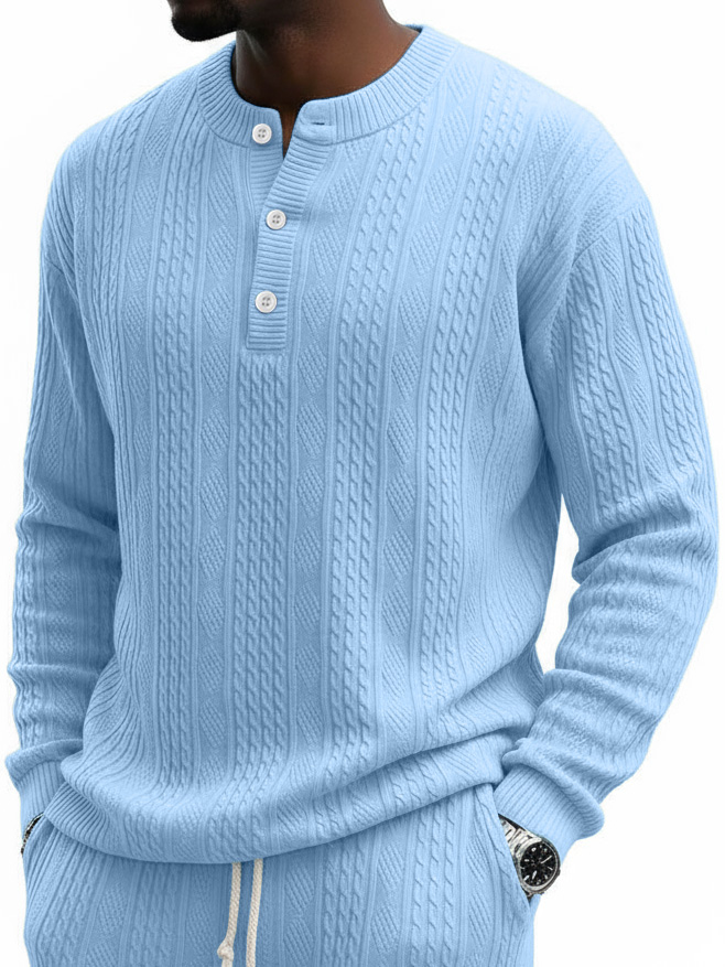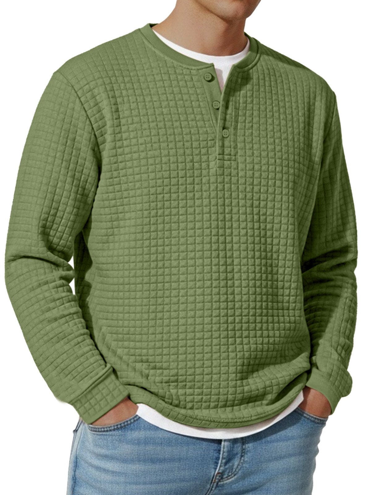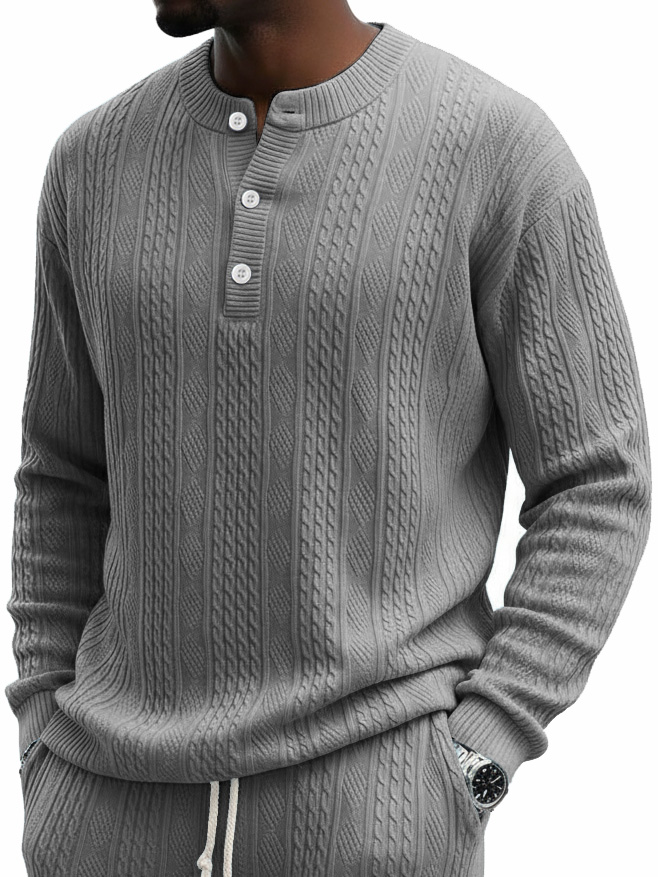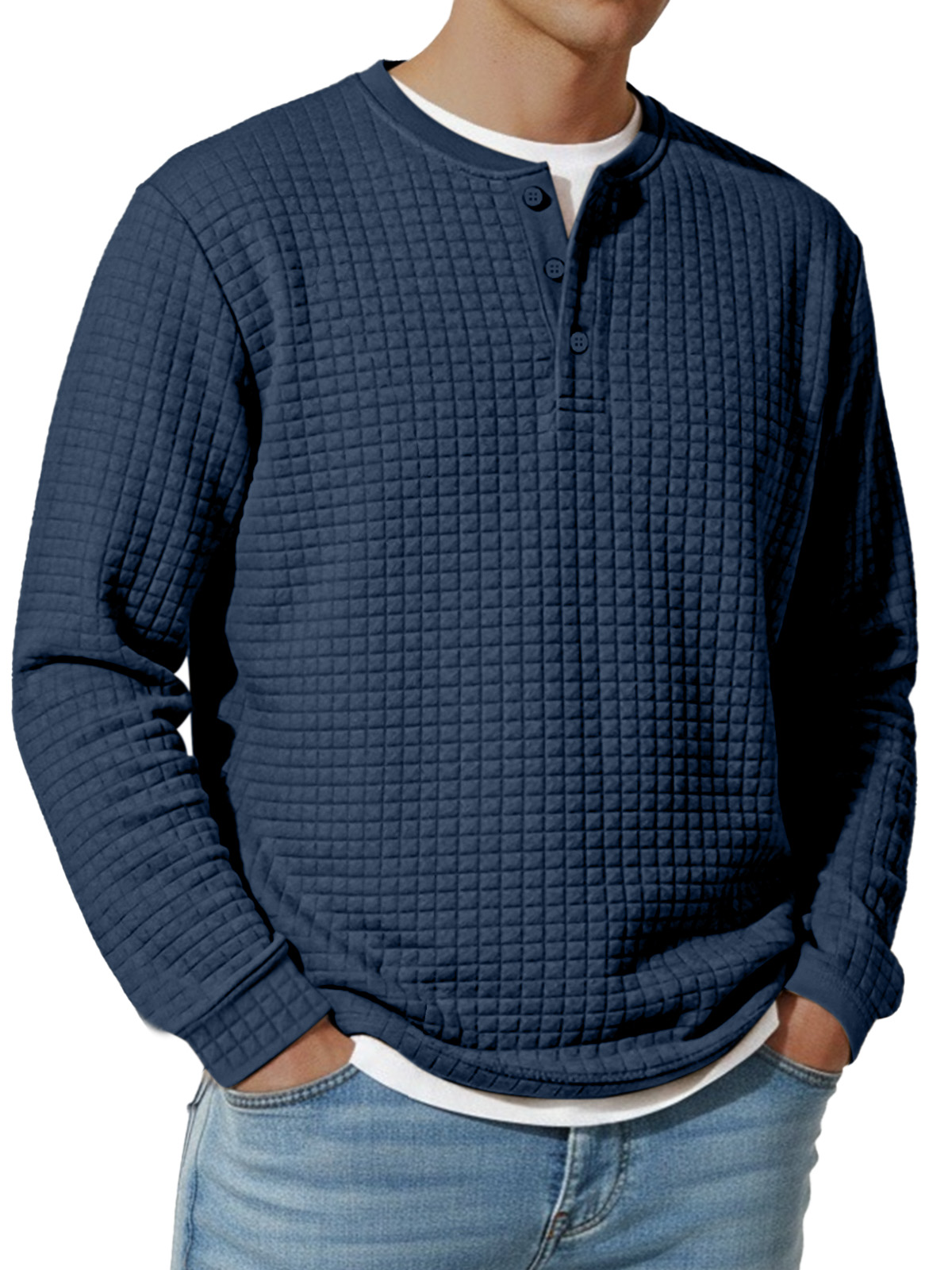 Men's Casual Solid Color Henley Collar Diamond Jacquard Stripe Sweatshirt