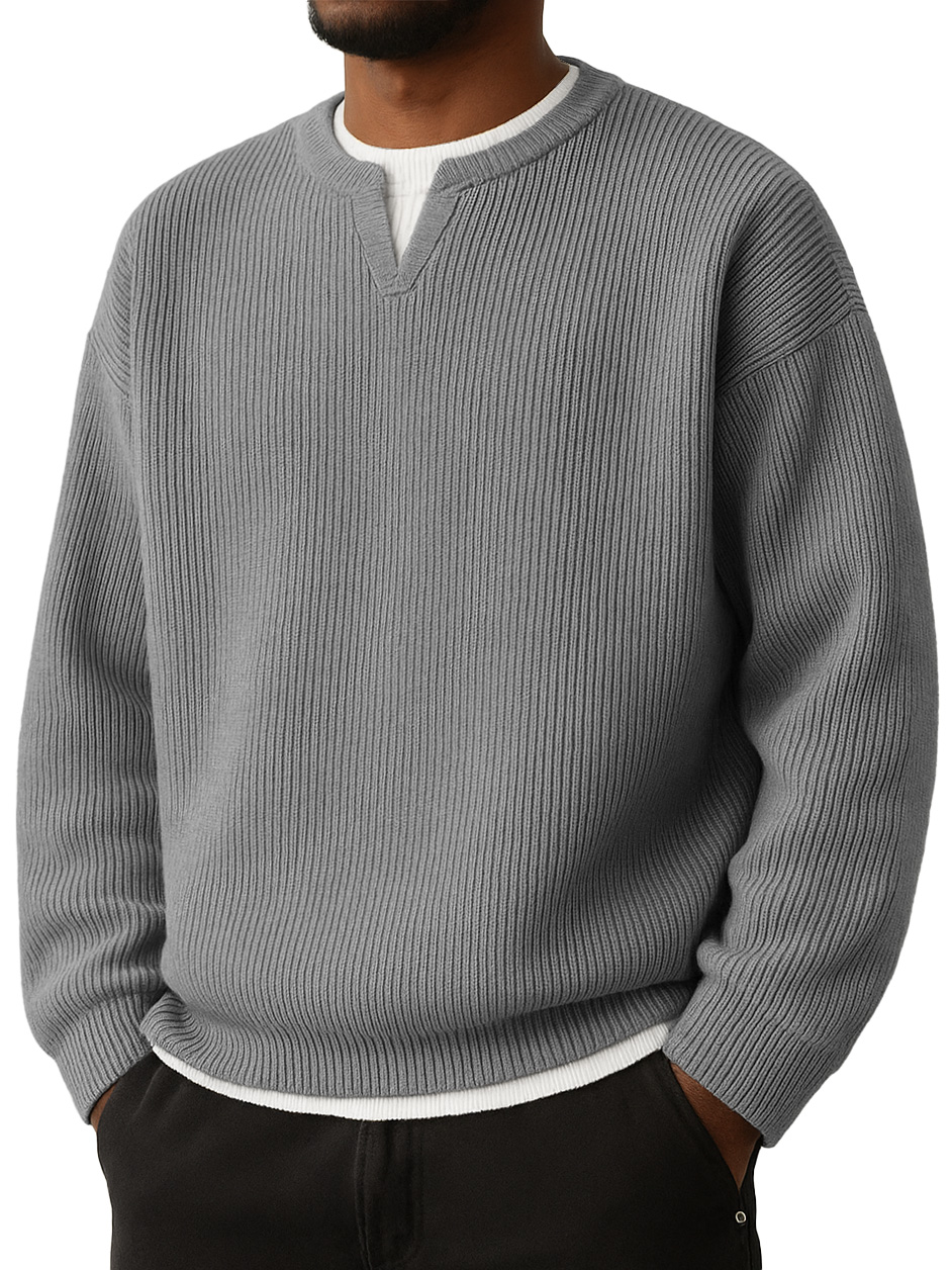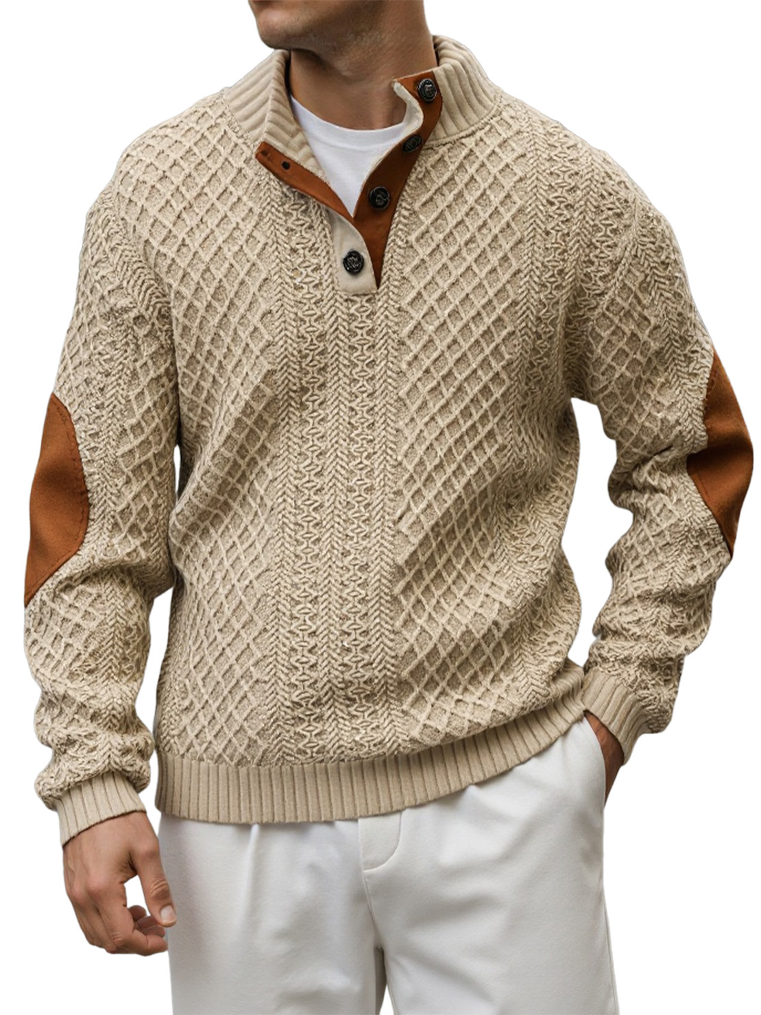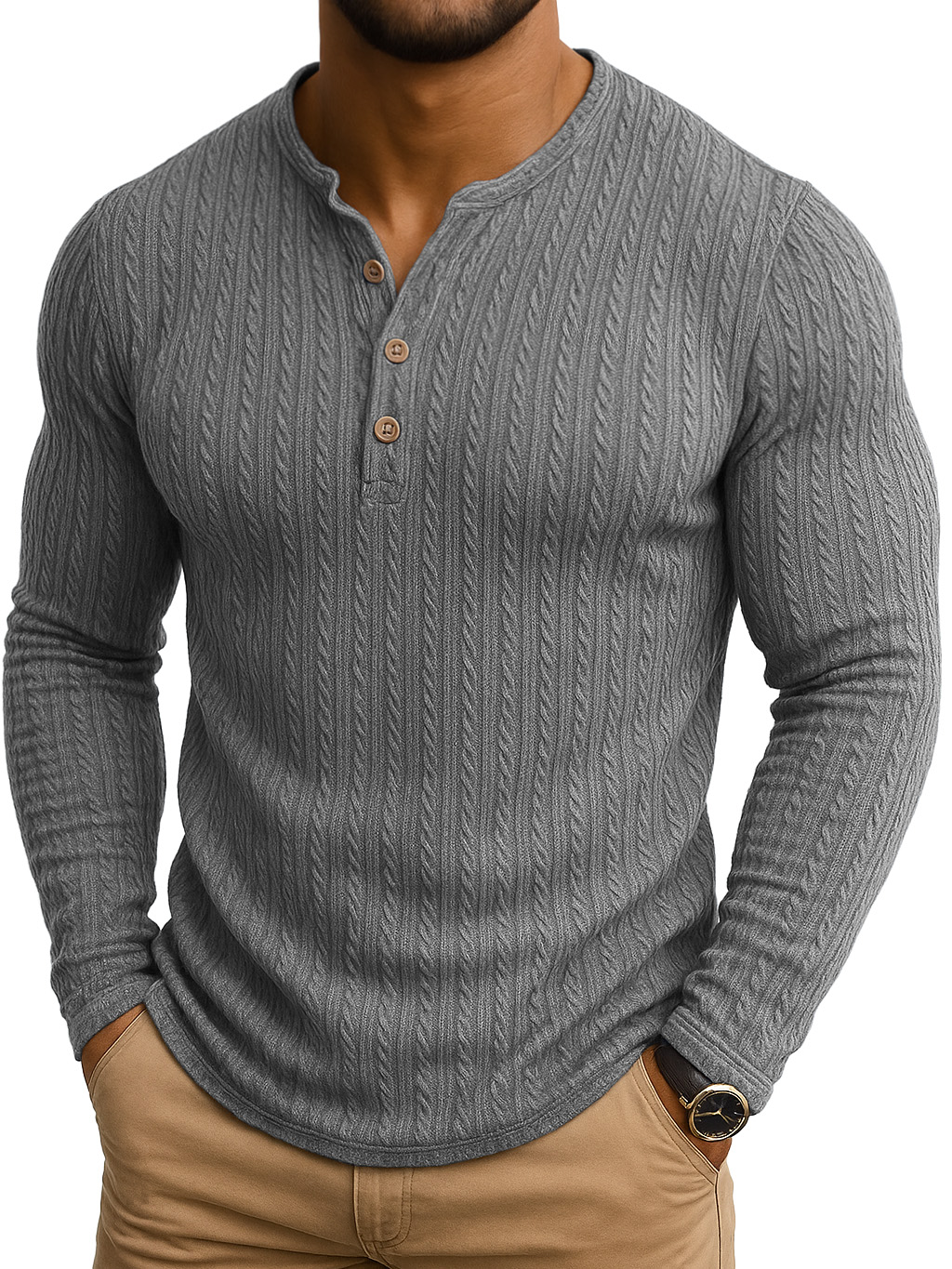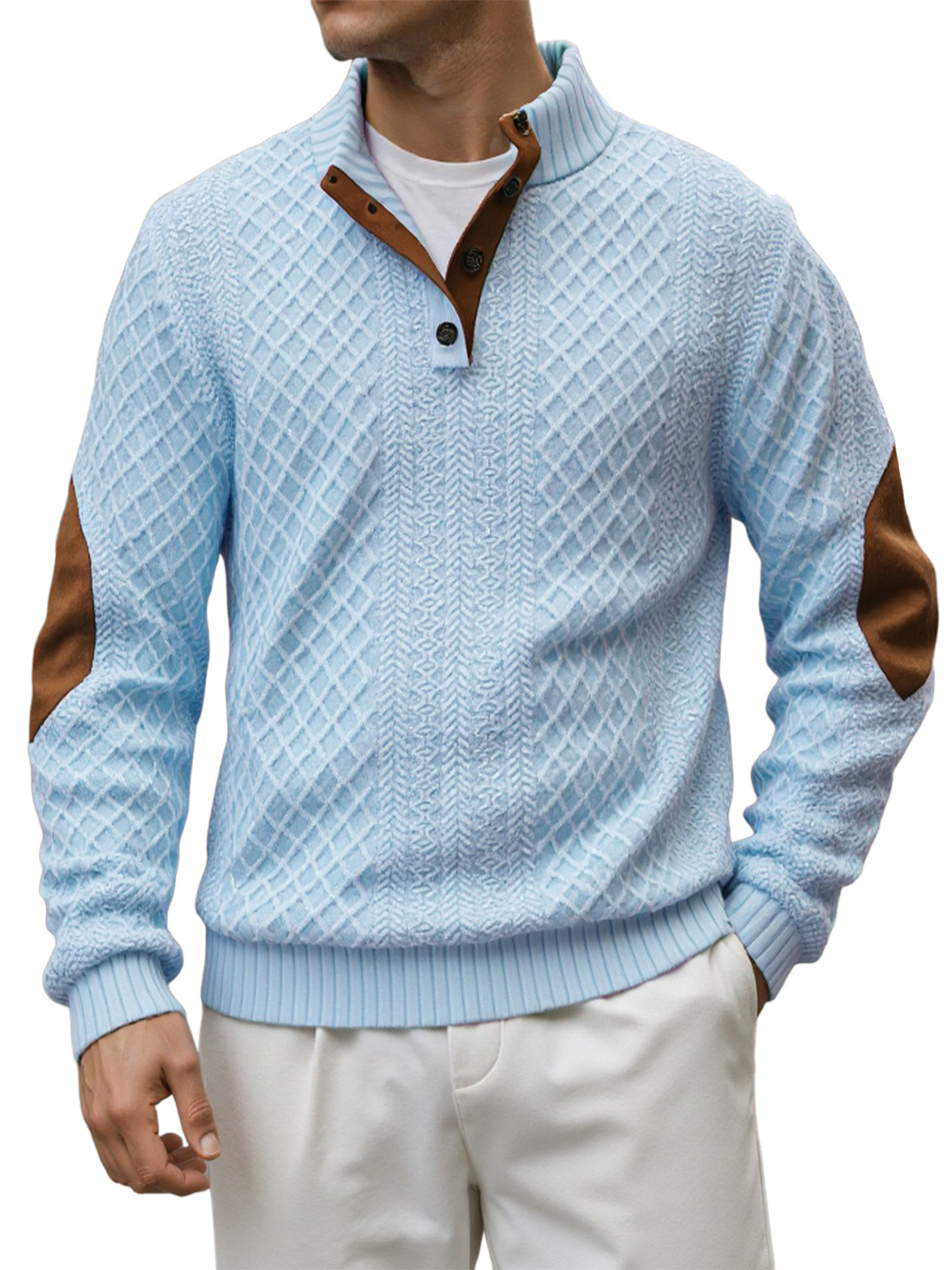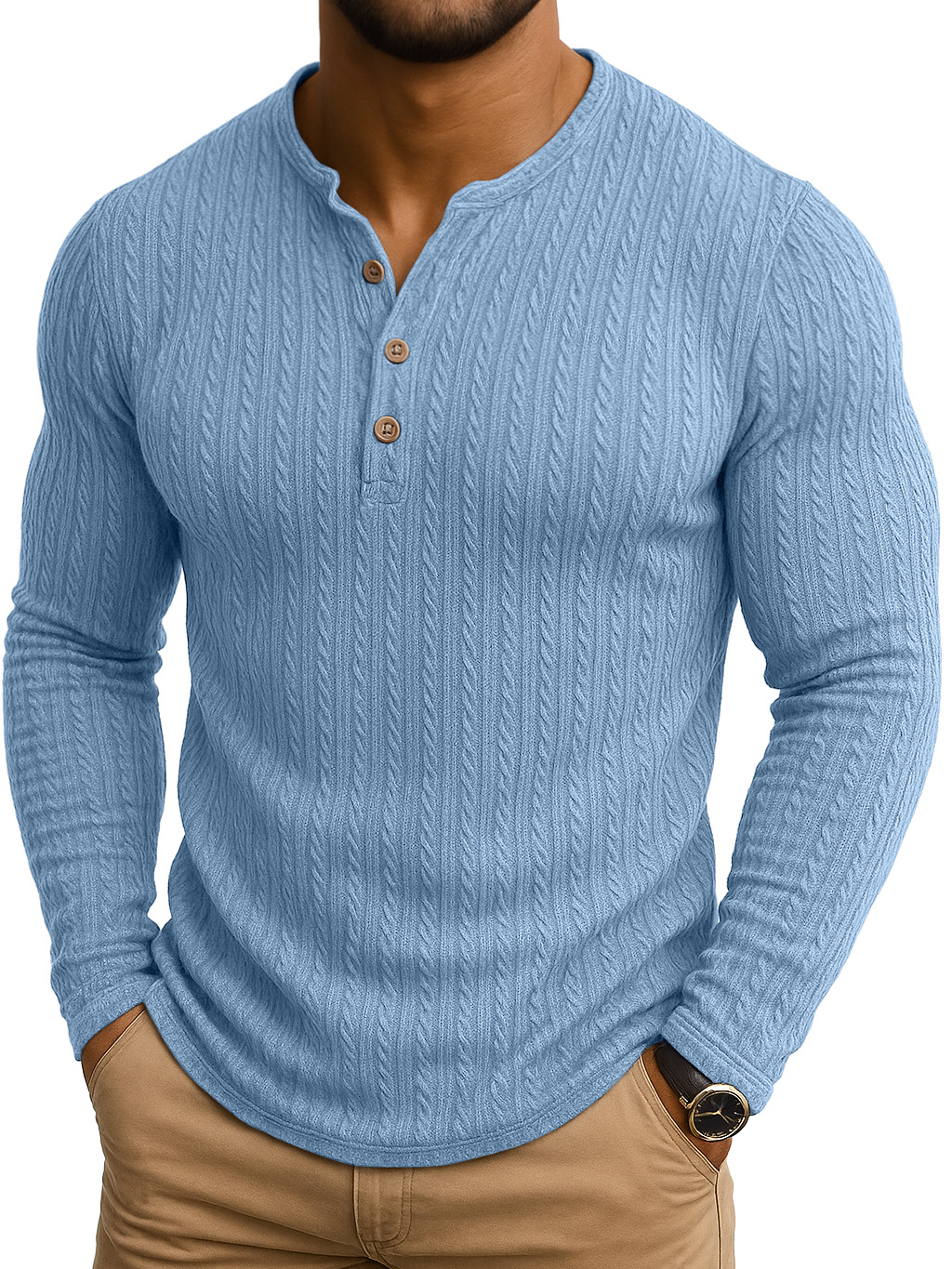 Men's Casual Solid Color Henley Collar Diamond Jacquard Stripe Sweatshirt