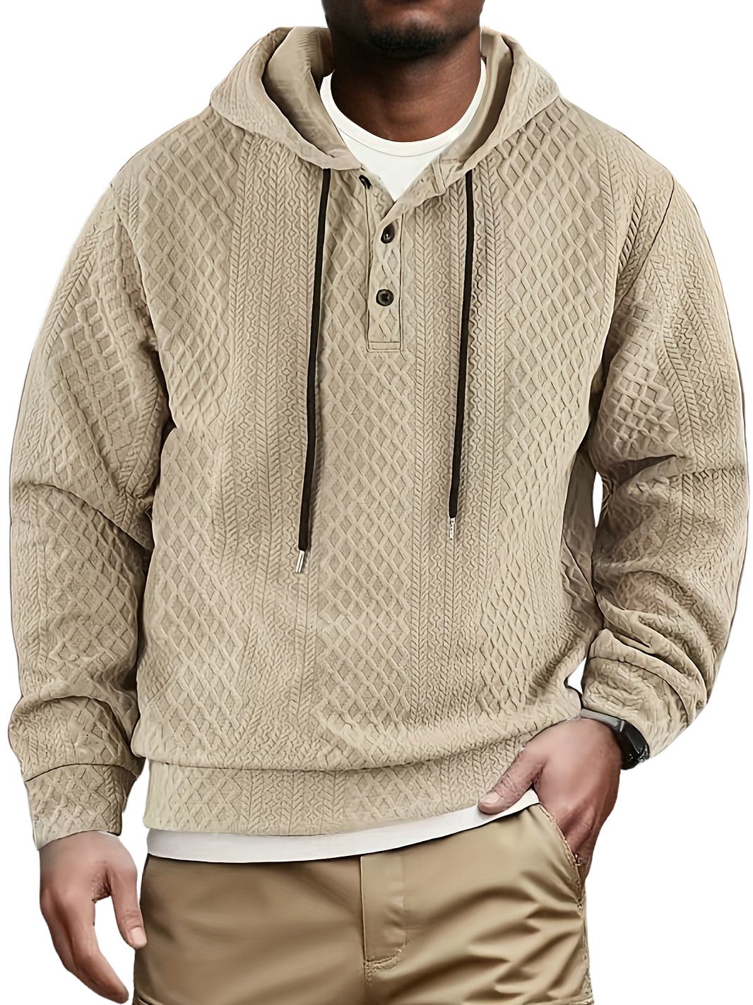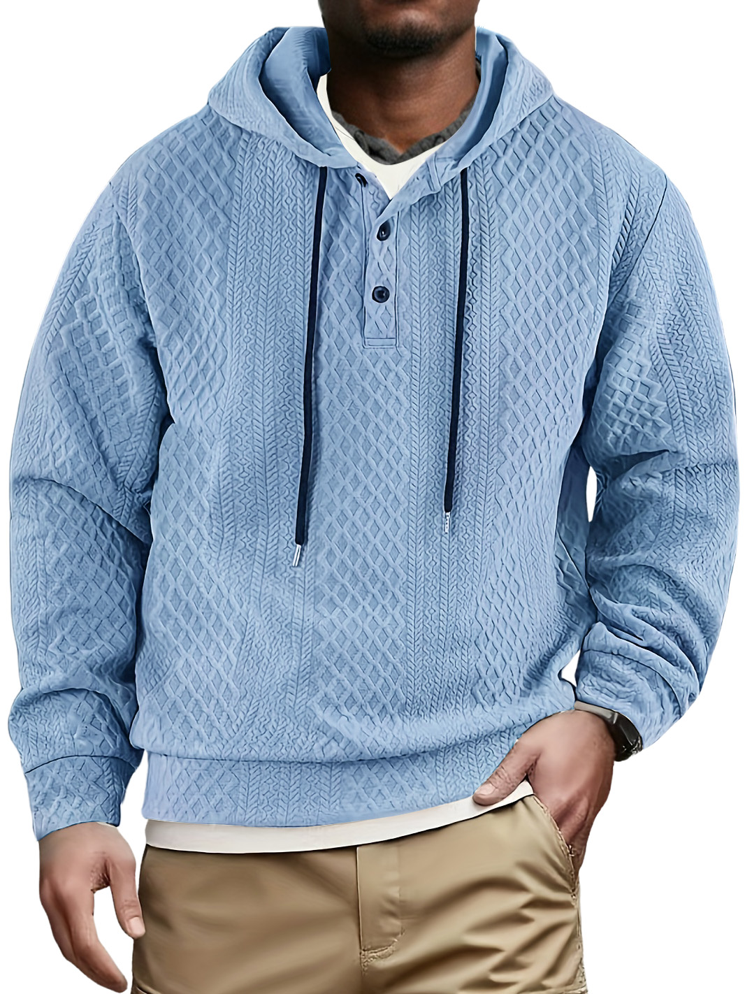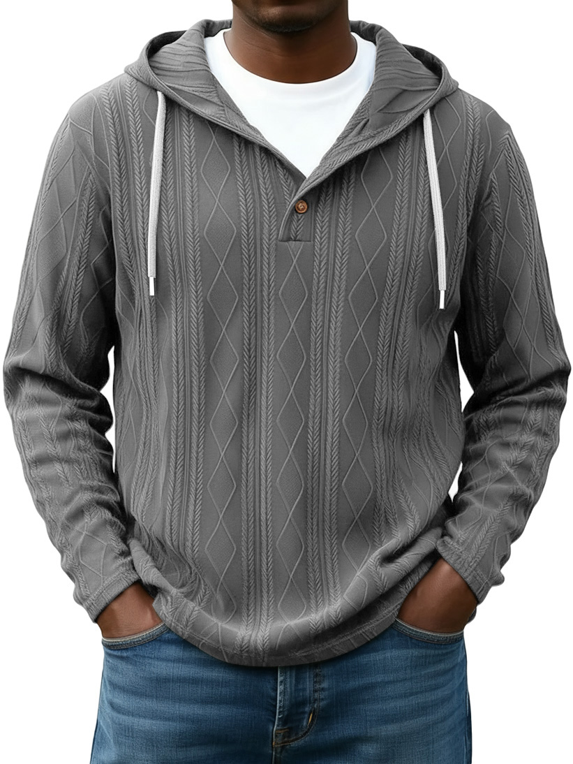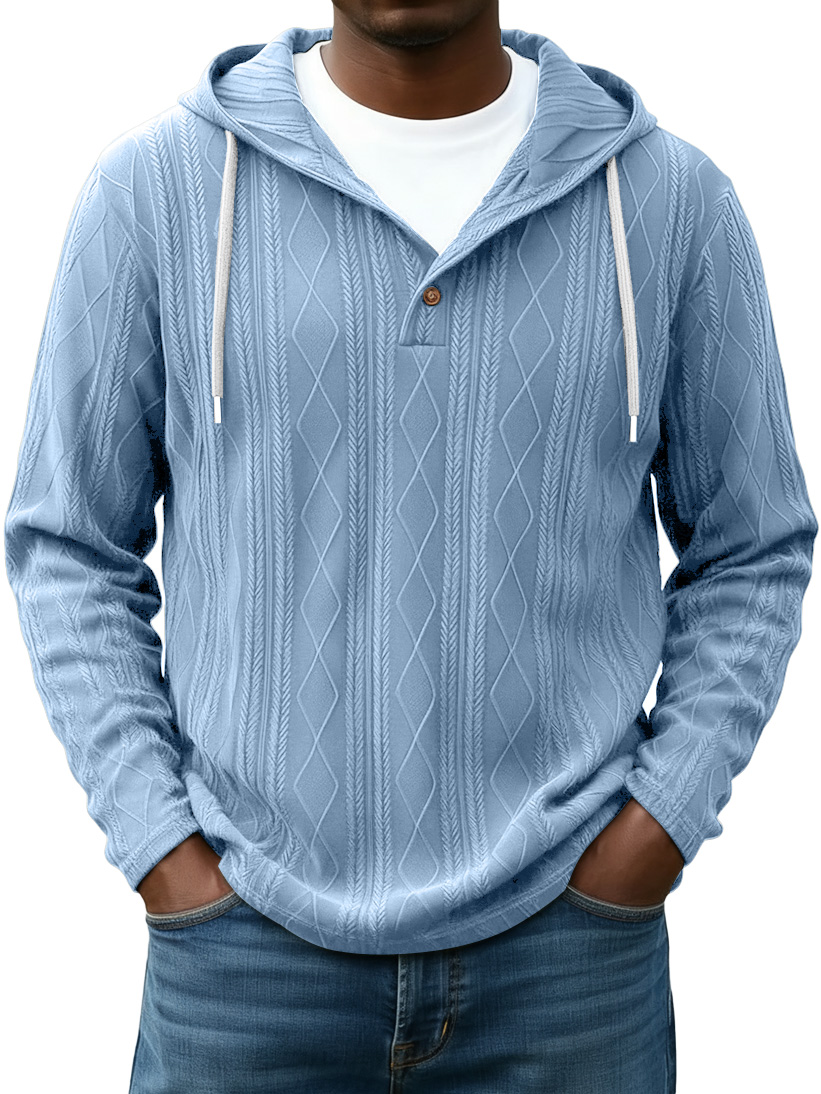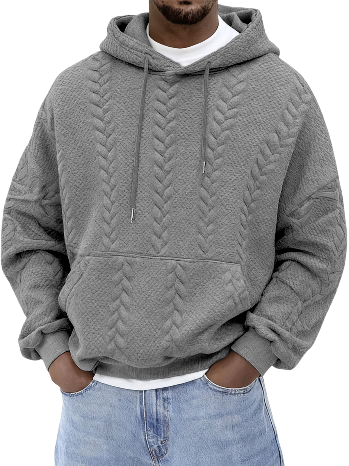 Men's Jacquard Solid Color Textured Hooded Sweatshirt