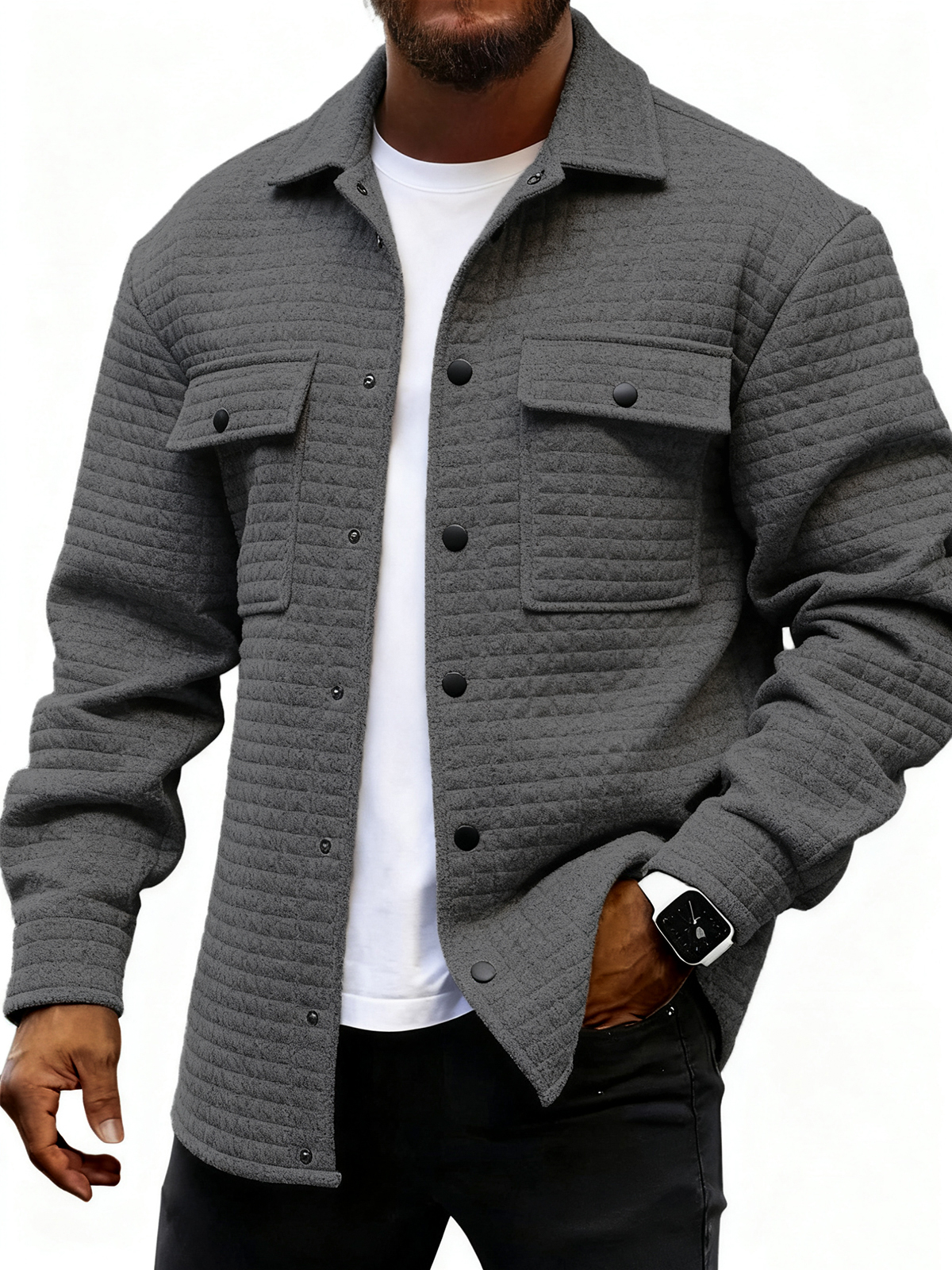 Men's Daily Jacquard Texture Casual Lapel Long-sleeved Shirt