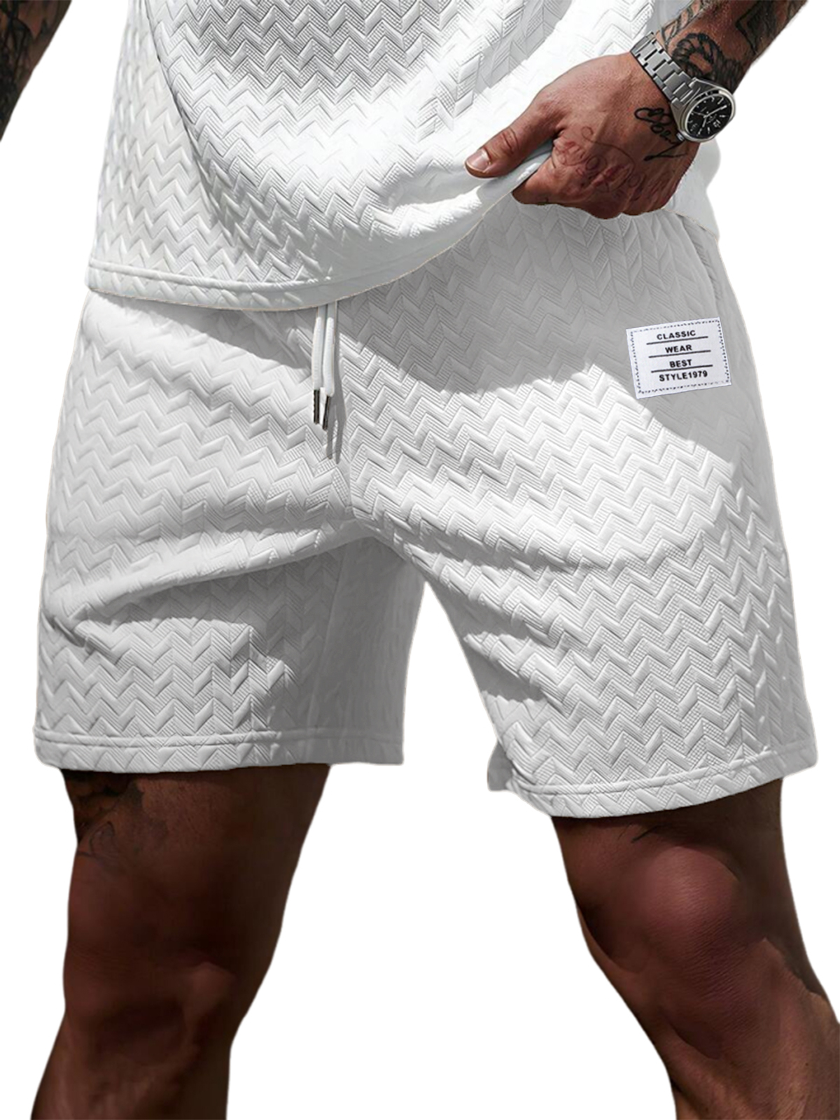 Men's Casual Jacquard Textured Embroidered Logo Shorts
