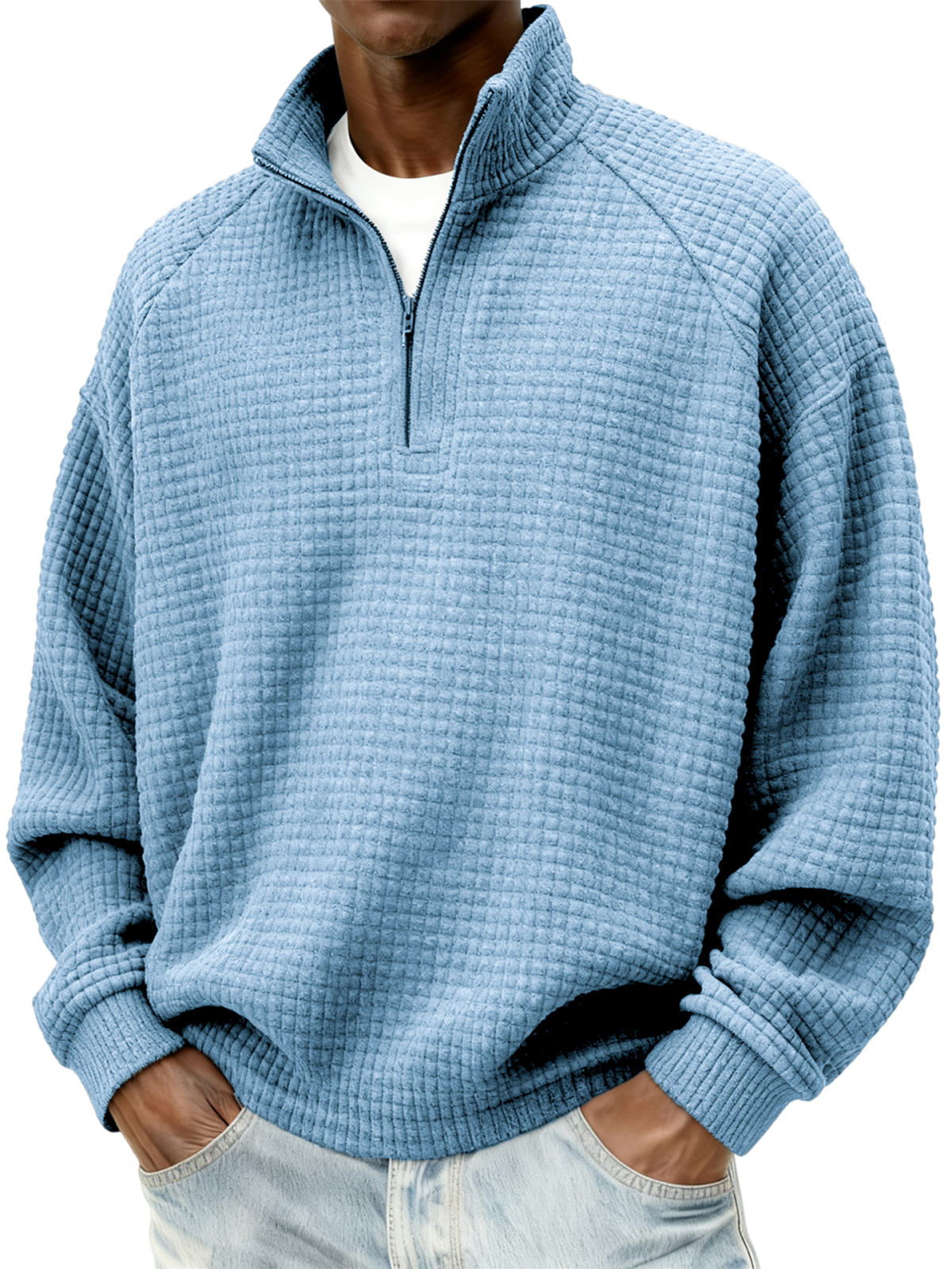 Men's Casual Comfortable Jacquard Turn-Down Collar Quarter Zips Long Sleeve Sweatshirt