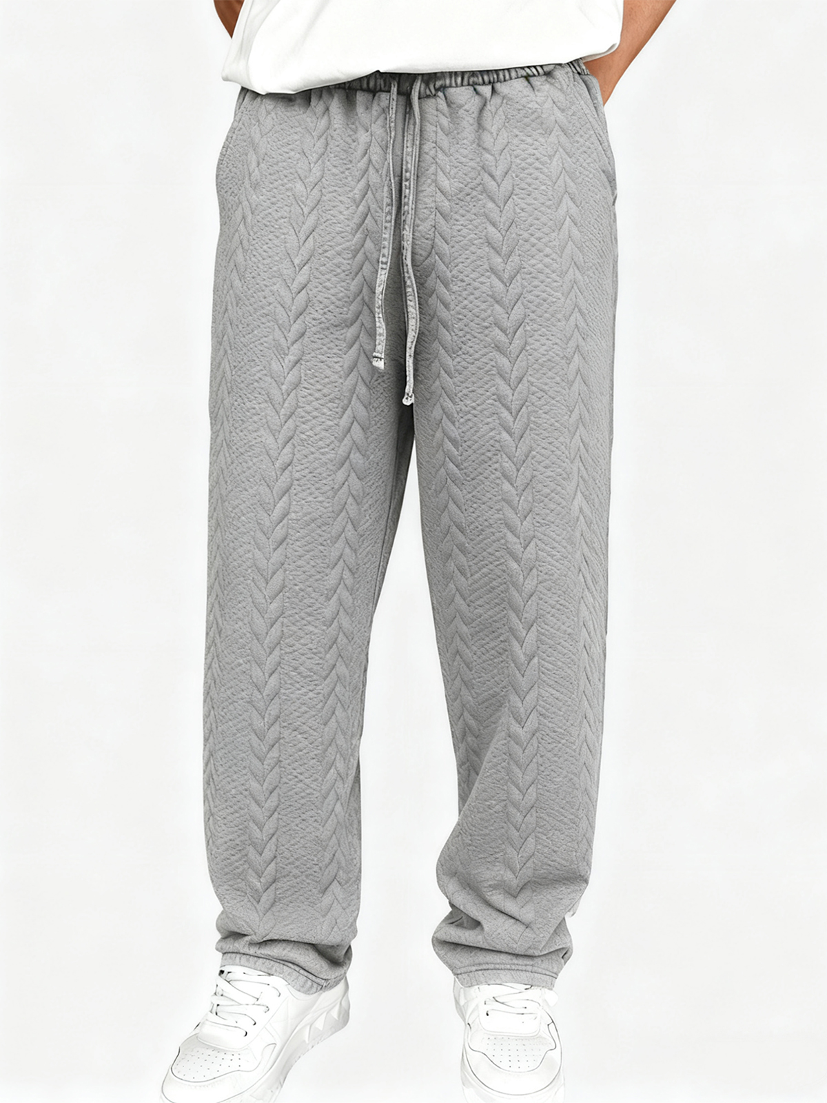 Men's Casual Jacquard Loose Solid Color Drawstring Wide-leg Straight Trousers