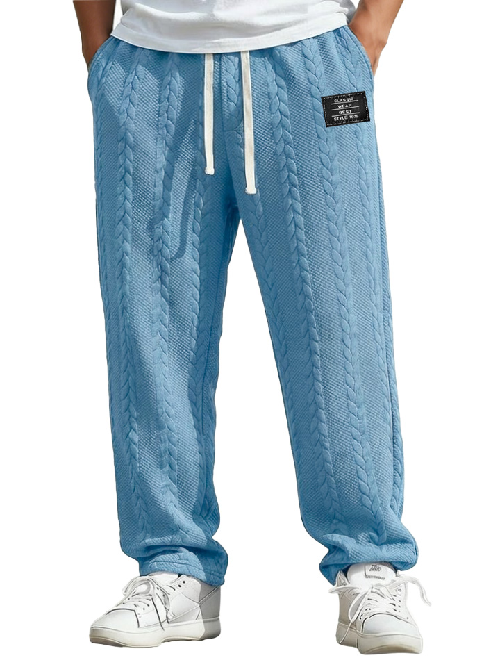 Men's Casual Jacquard Textured Embroidered Logo Elastic Waist Loose Trousers