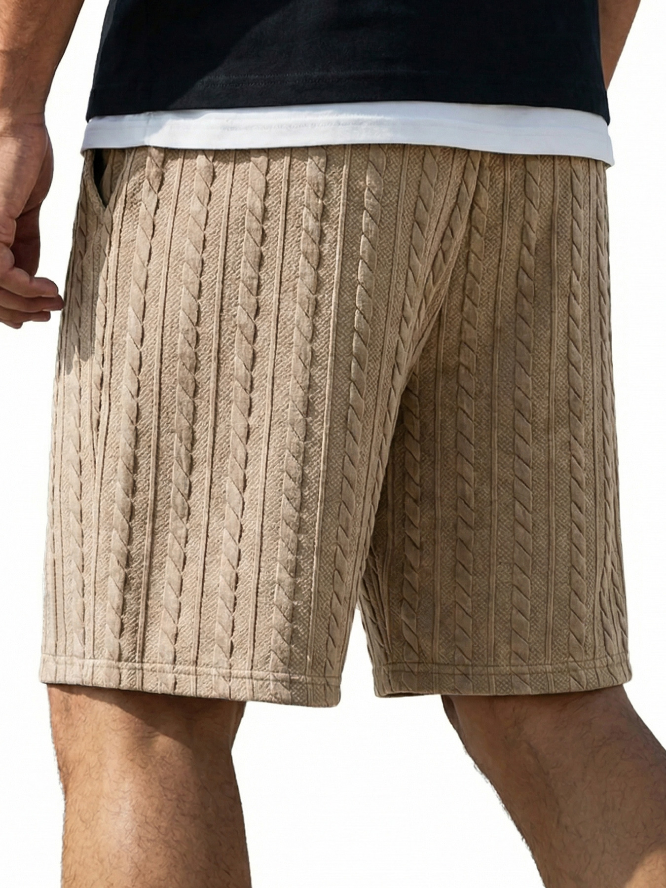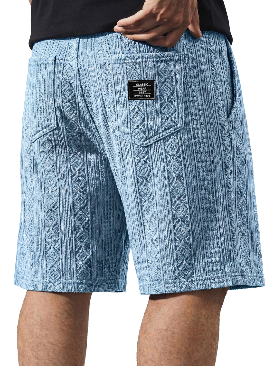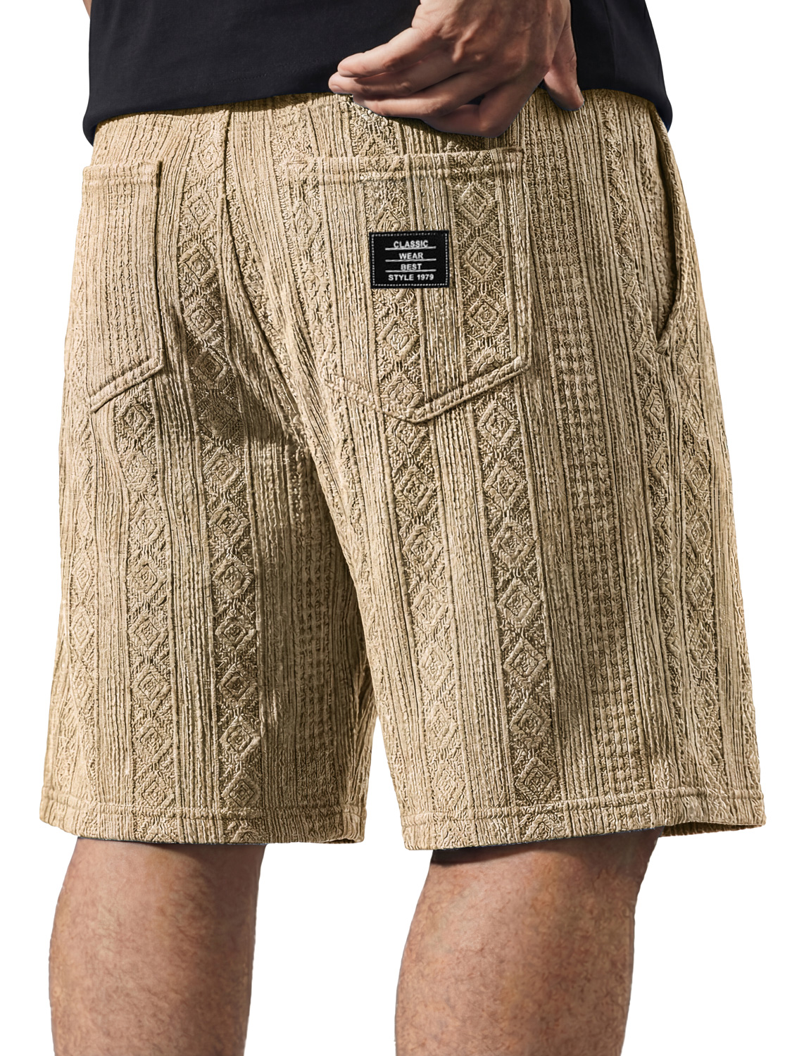 Men's Casual Jacquard Textured Shorts With Embroidered Logo And Elastic Waistband
