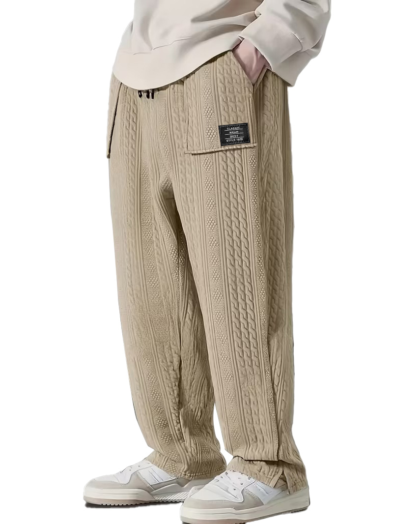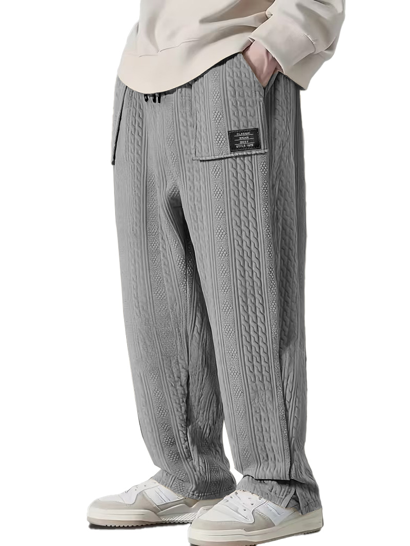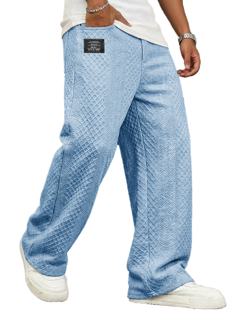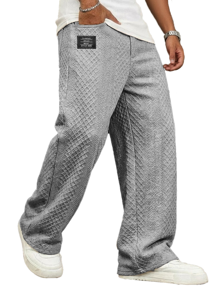 Men's Jacquard Textured Embroidered Logo Casual Loose-fitting Trousers With Elastic Waistband