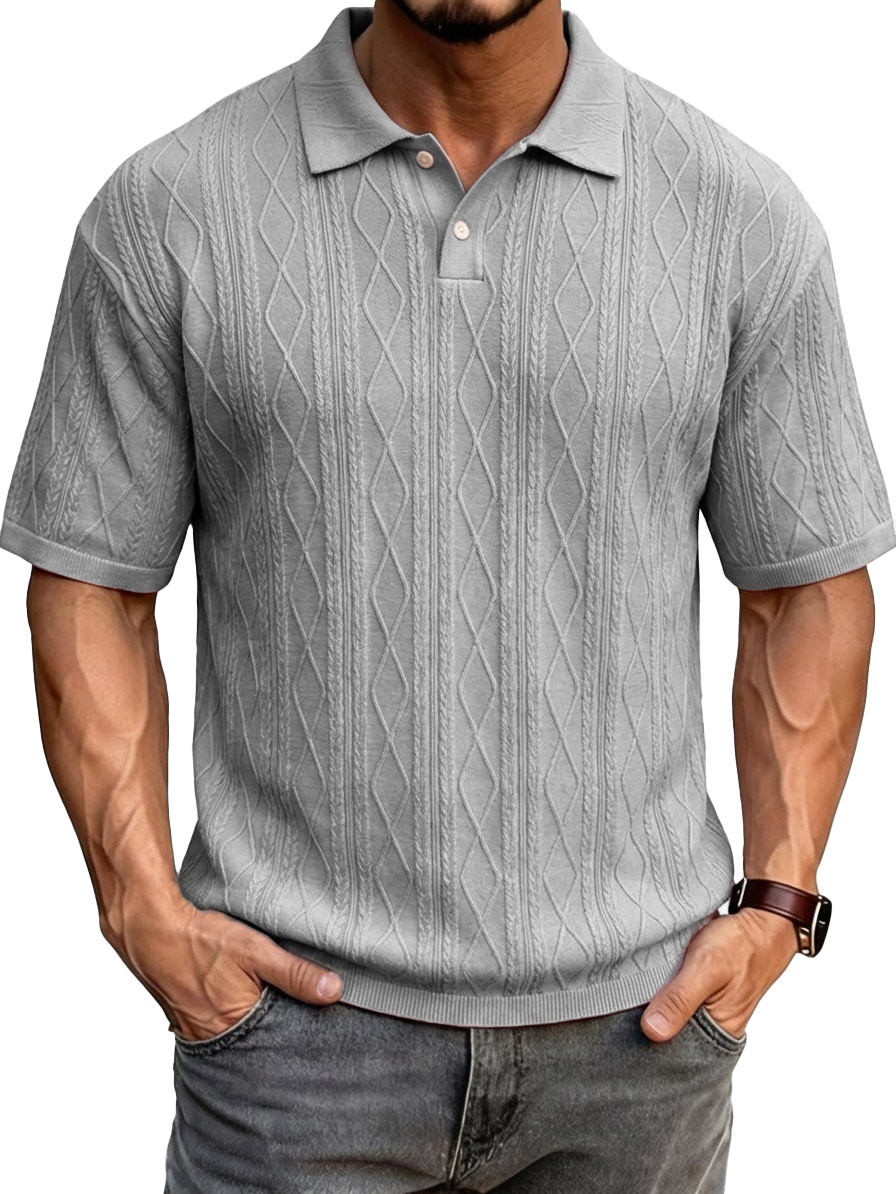 Men's Fashionable Casual Jacquard Fabric Collared Short-Sleeve Polo Shirt