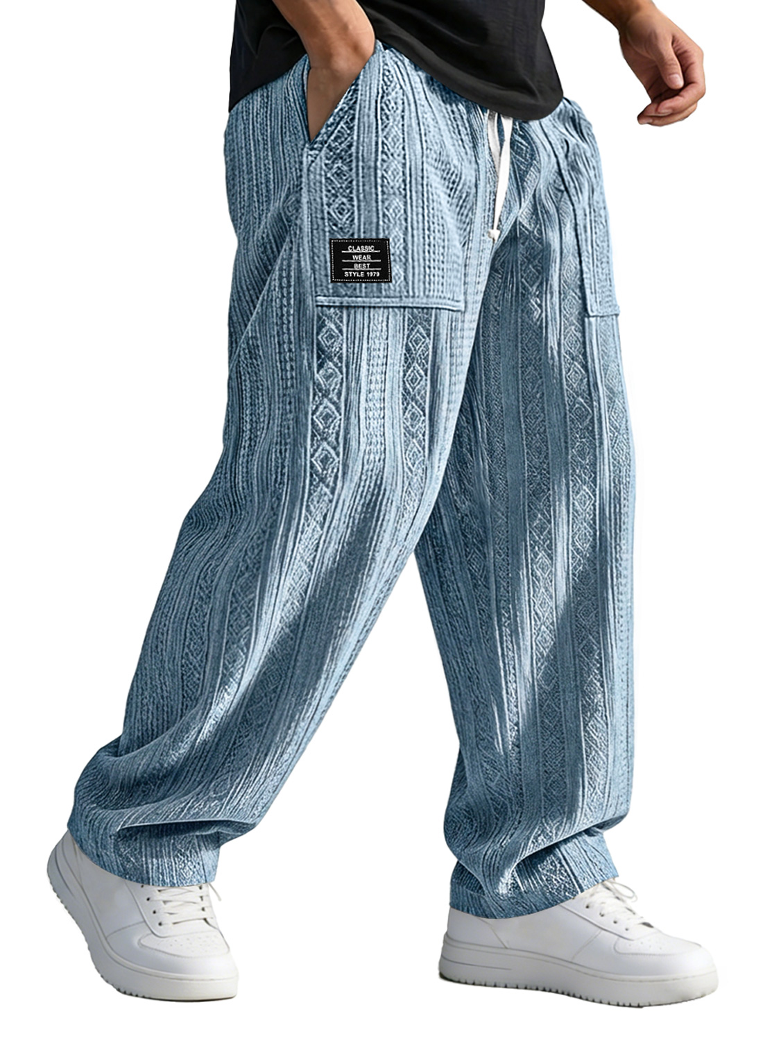 Men's Fashionable Casual Jacquard Fabric Loose-Fit Pocket Trousers