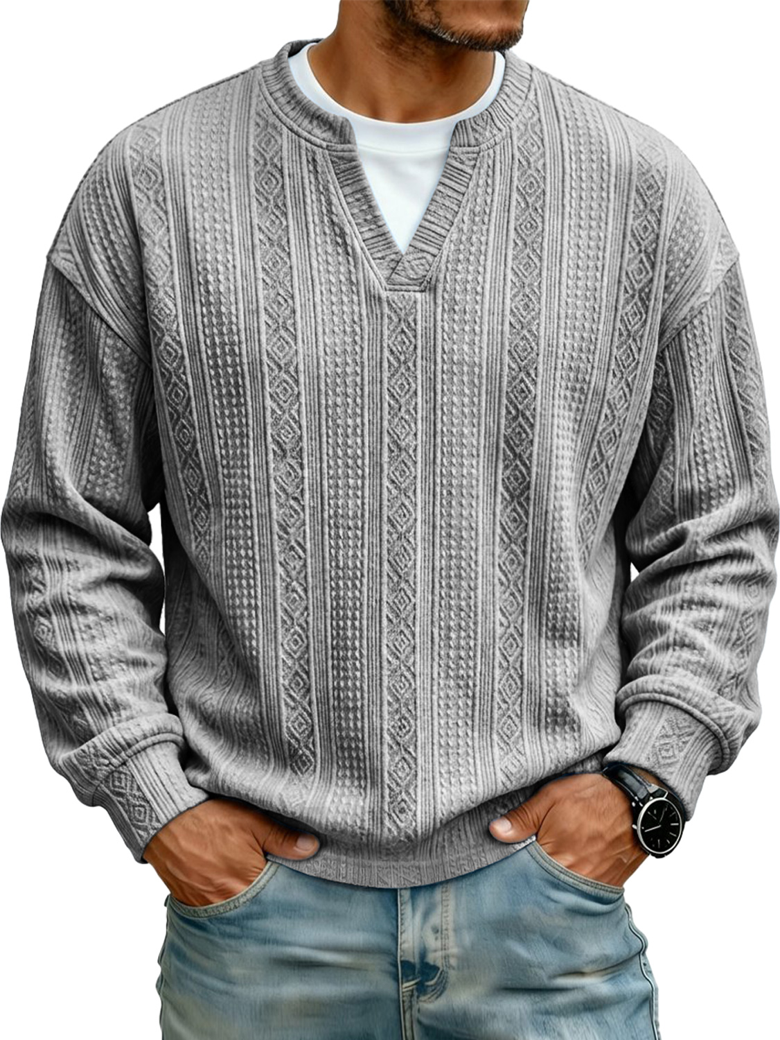 Men's Comfortable Casual Henley Collar Diamond Jacquard Stripe Sweatshirt