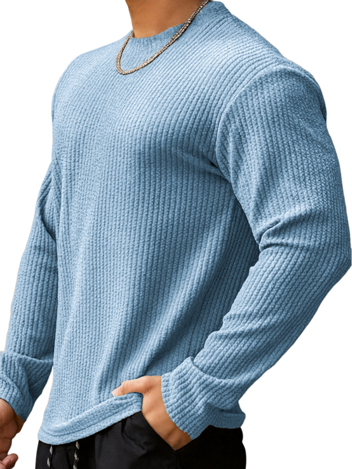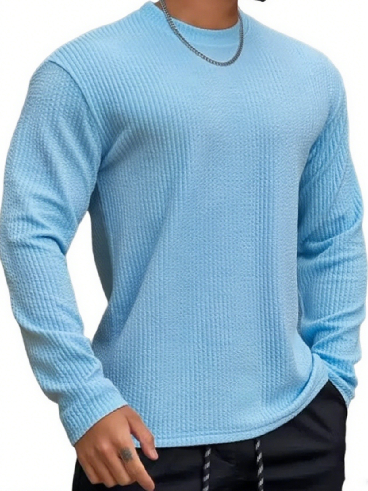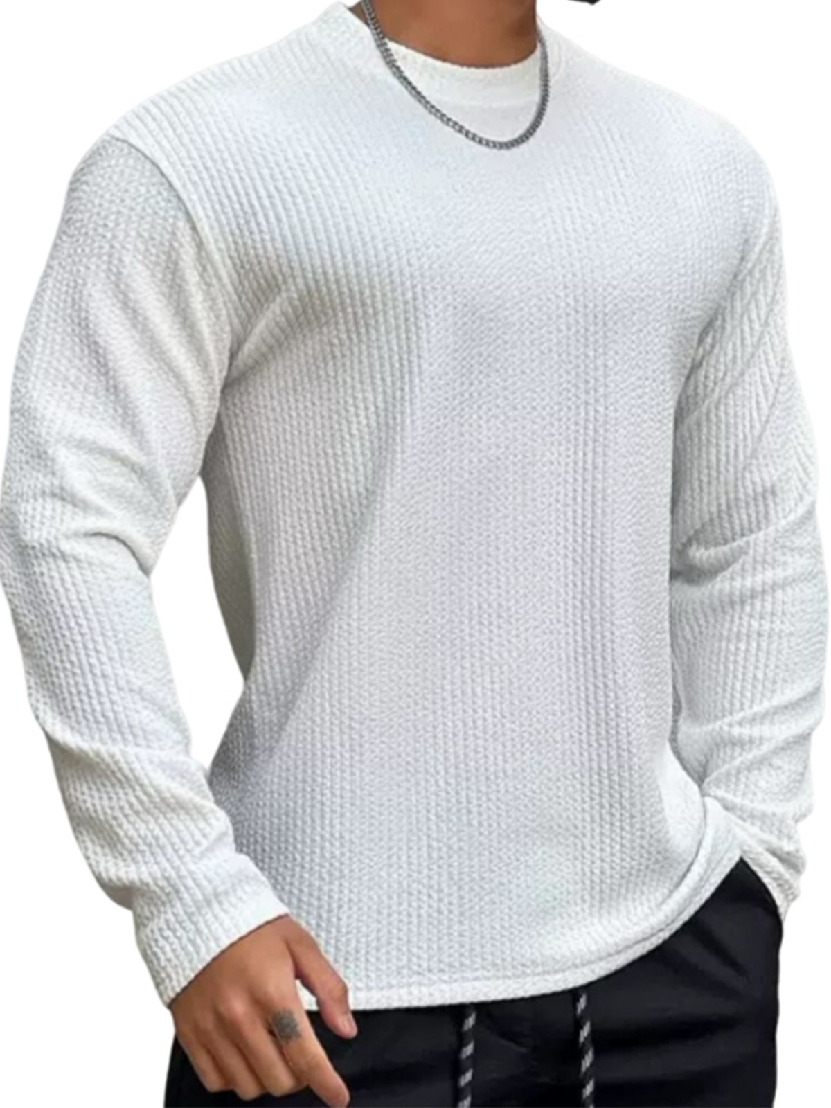 Men's Daily Round Neck Jacquard Texture Casual Solid Color Long Sleeve T-shirt
