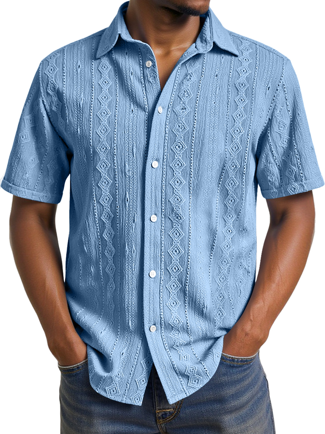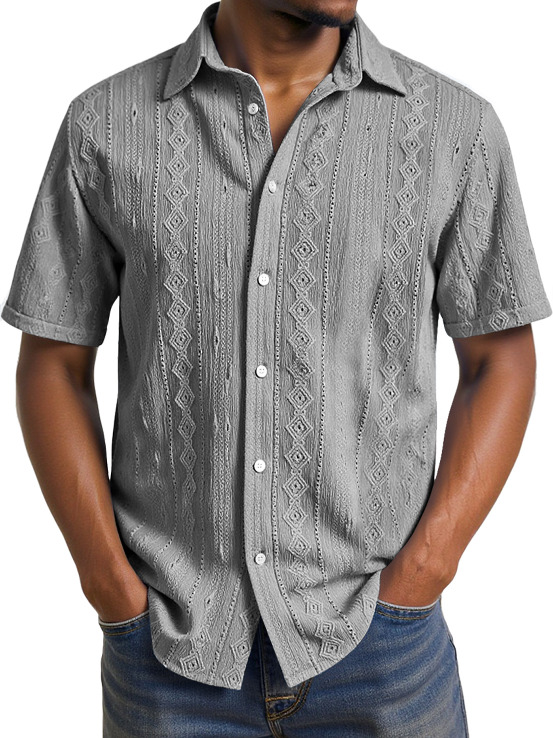 Men's Daily Casual Jacquard Texture Comfortable Short-sleeved Shirt