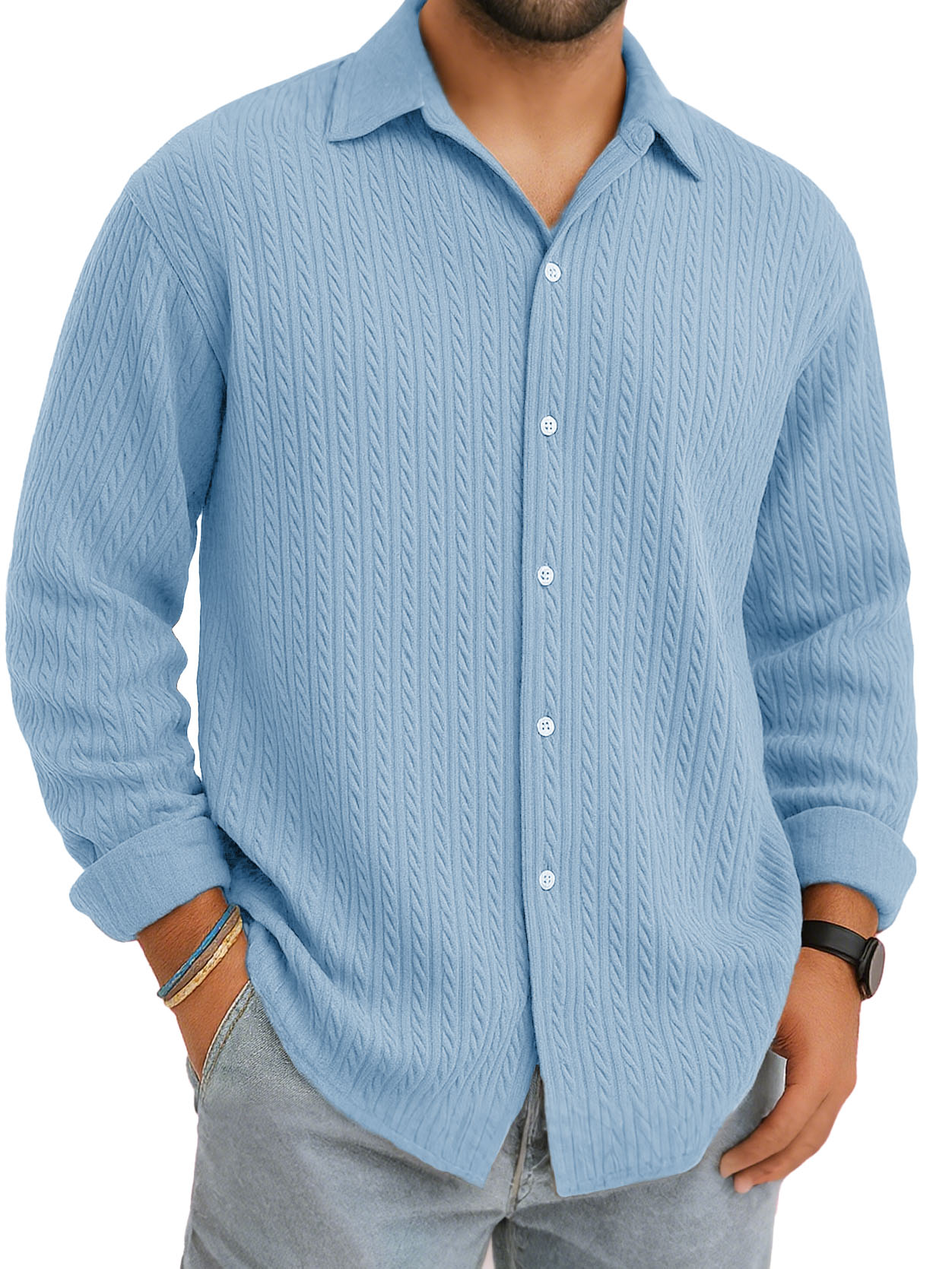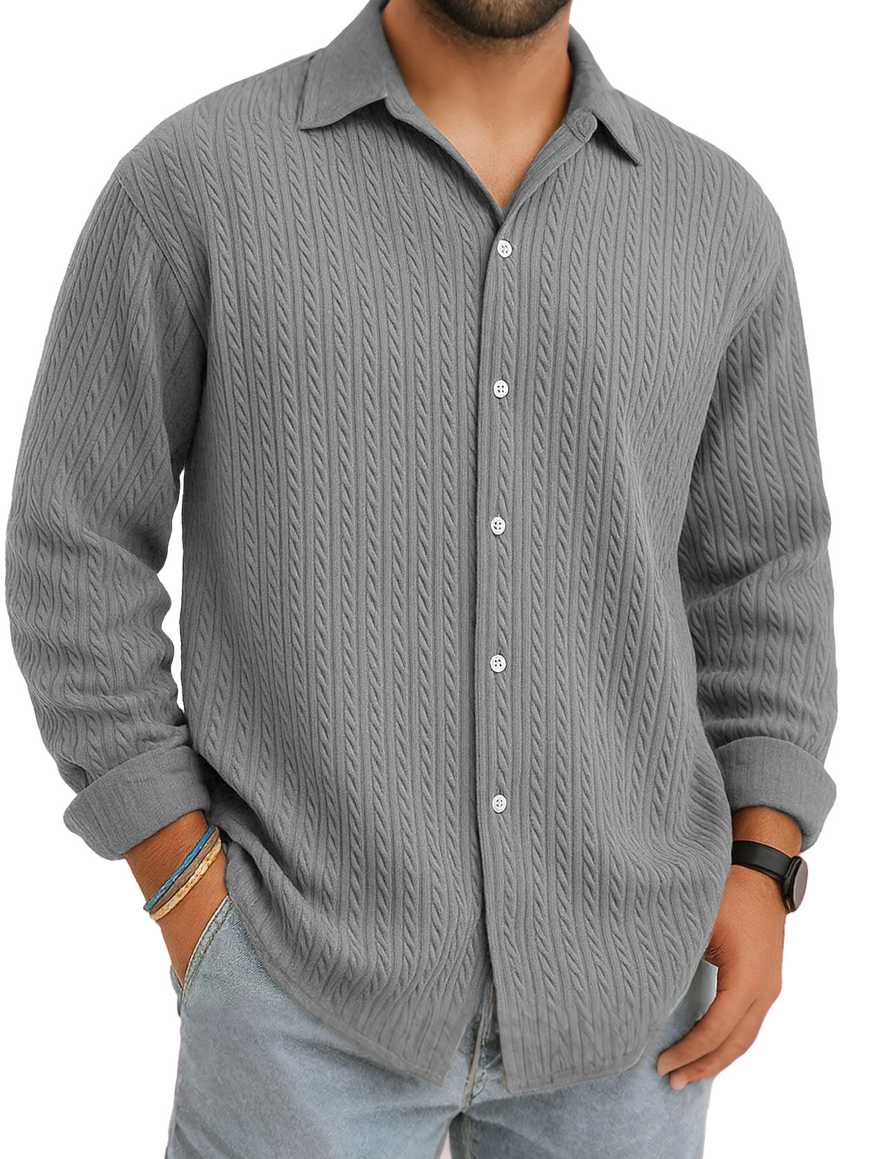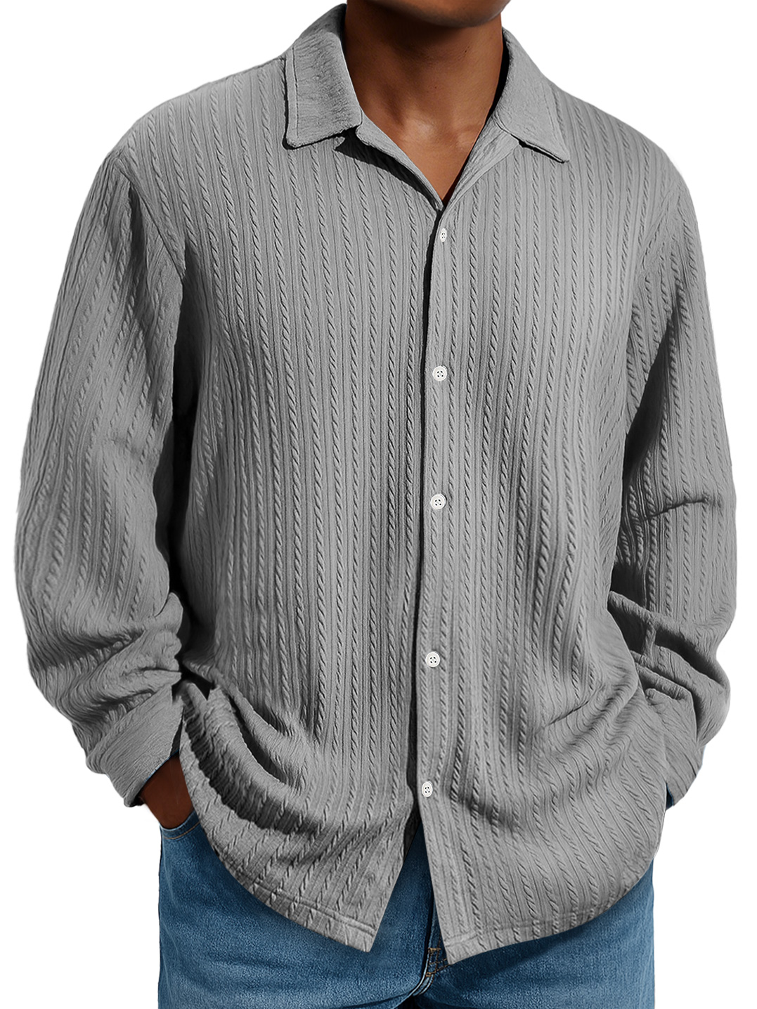 Men's Daily Jacquard Texture Casual And Comfortable Long-sleeved Shirt