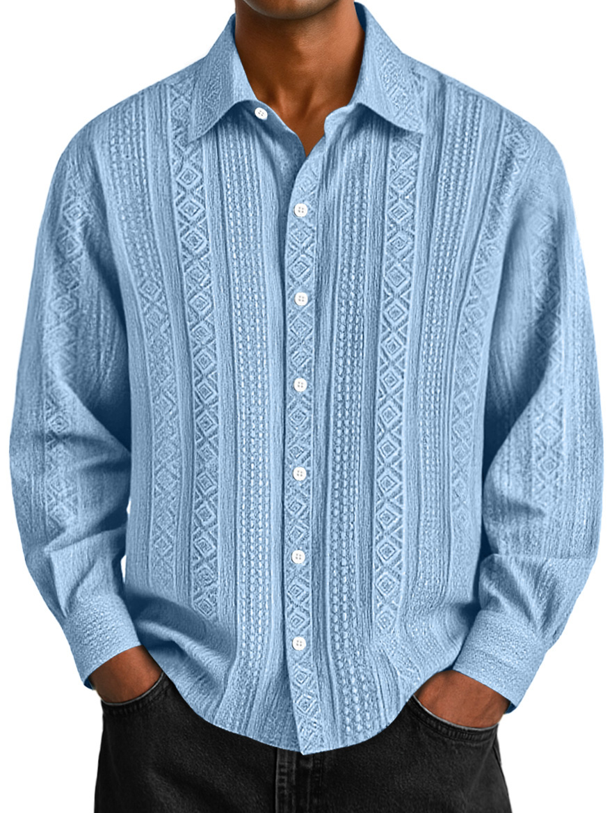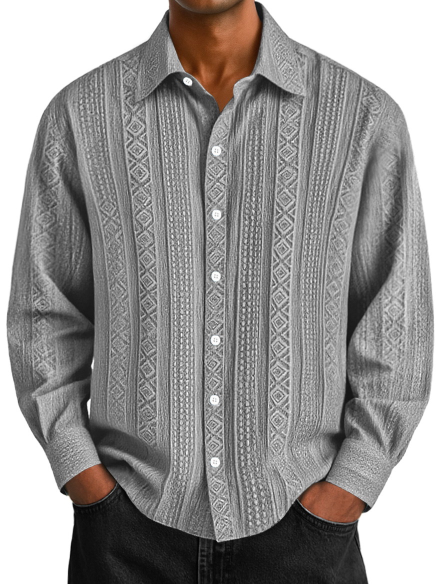 Men's Stylish Casual Everyday Jacquard Lapel Long-sleeved Shirt