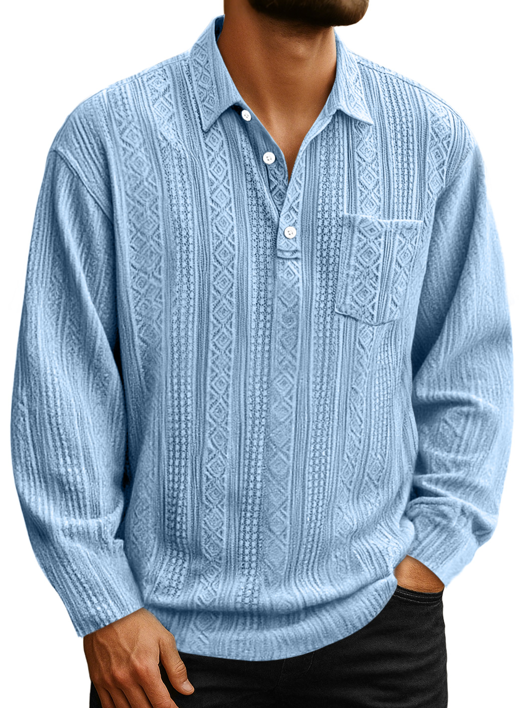 Men's Daily Jacquard Texture Lapel Button Casual Long-sleeved Polo Shirt