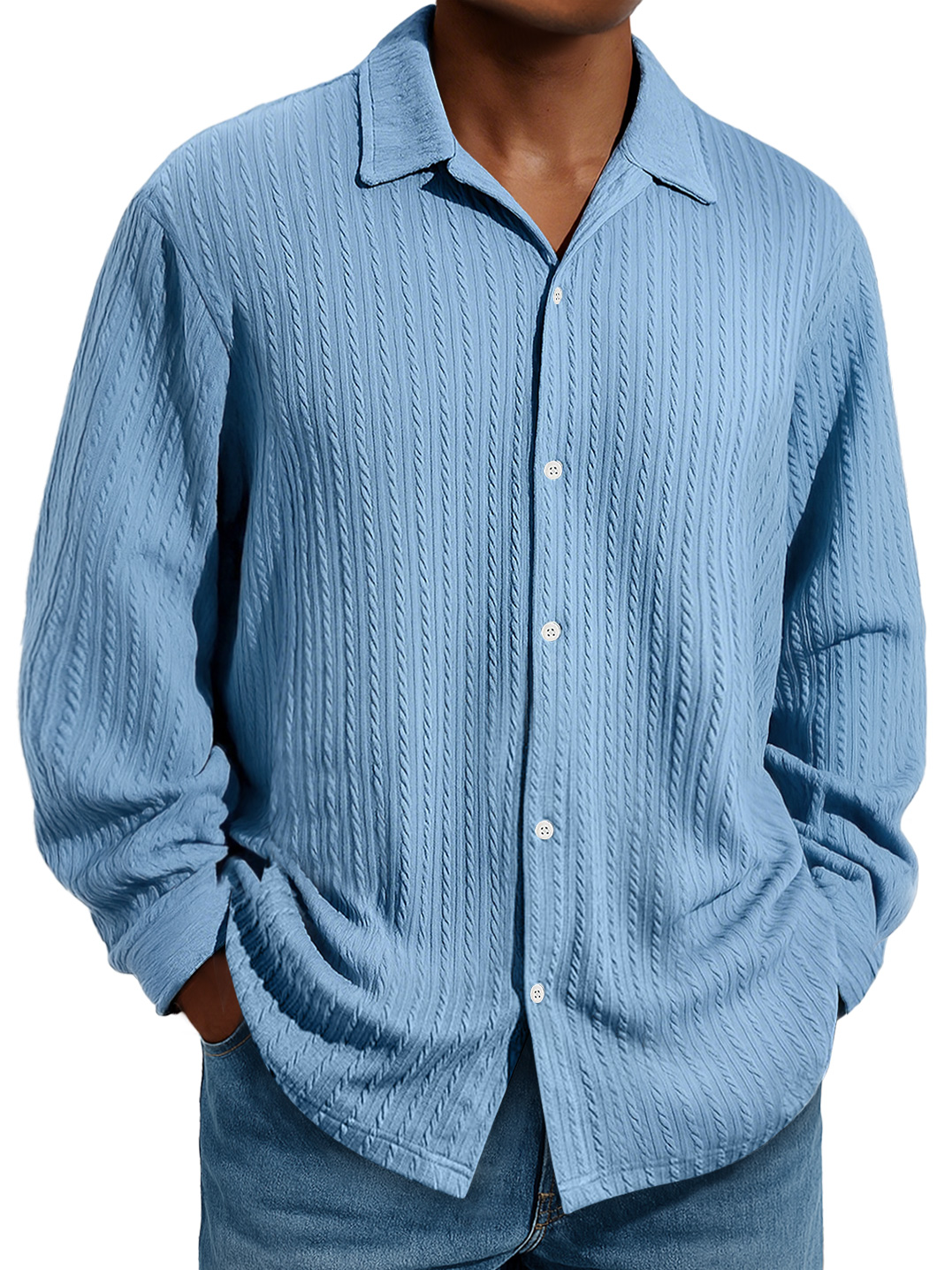 Men's Daily Jacquard Texture Casual Solid Color Long-sleeved Shirt