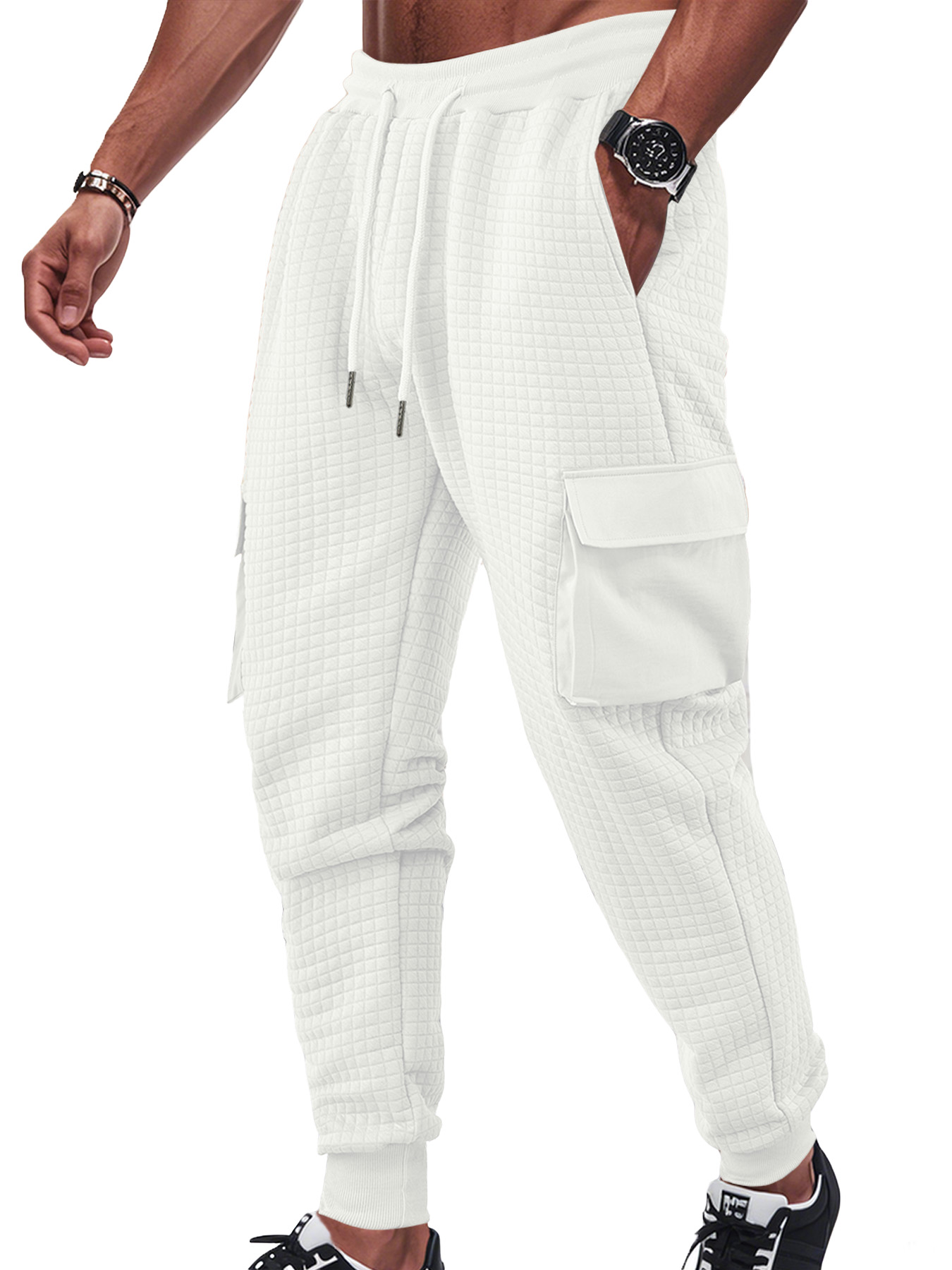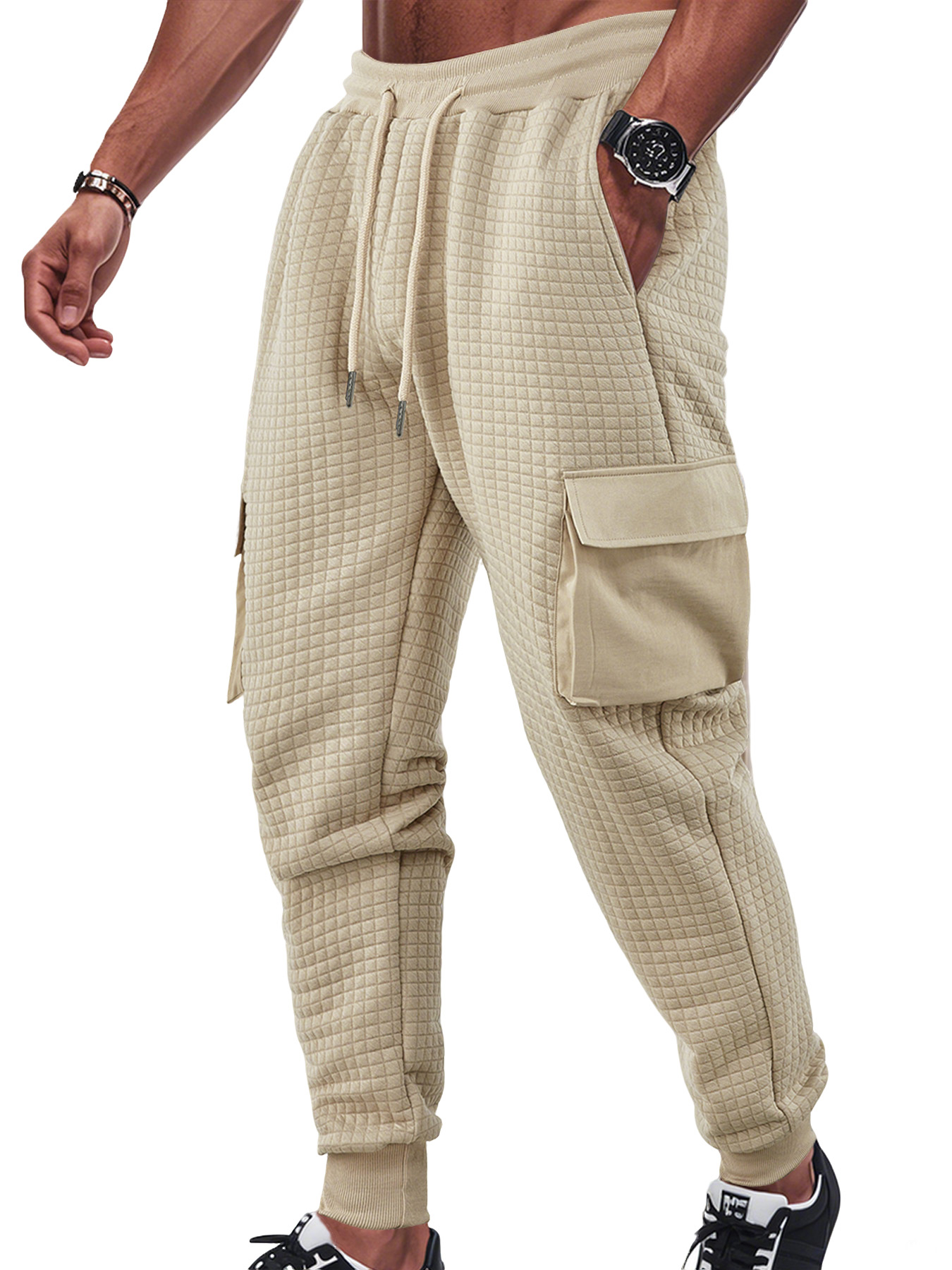 Men's Sports Thickened Multi-pocket Jacquard Small Square Casual Overalls