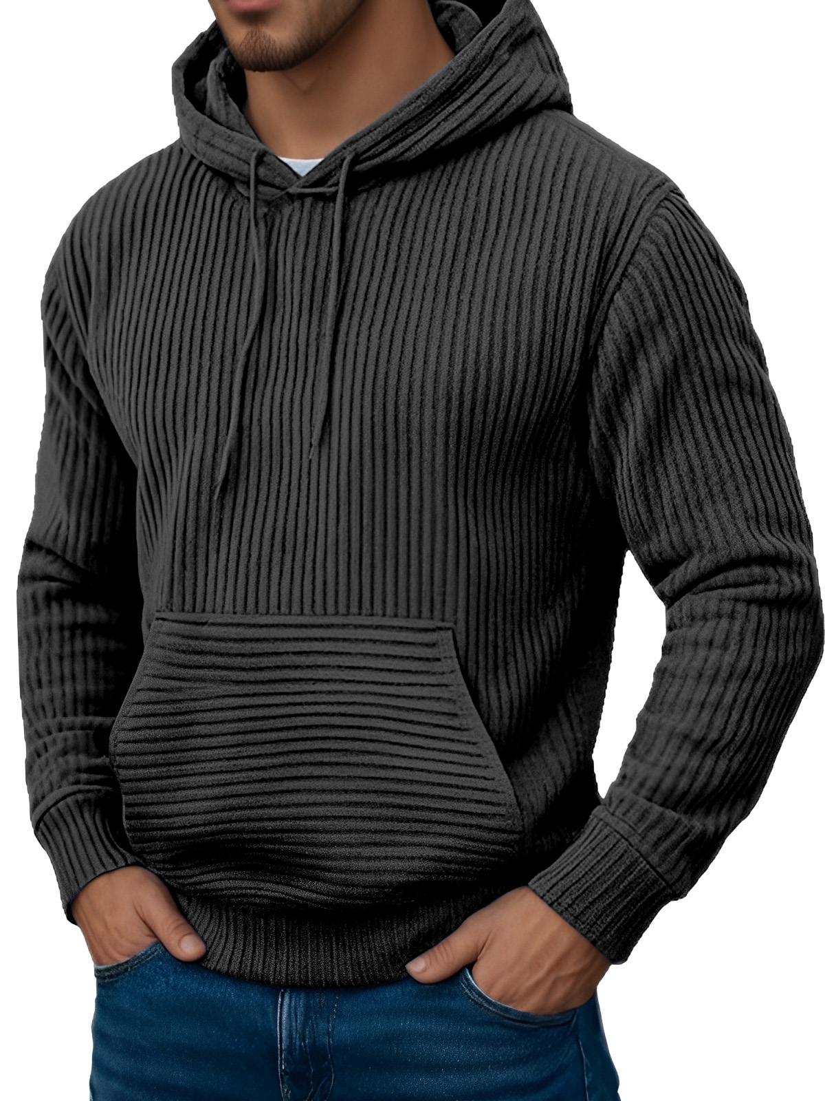 Men's Retro Simple Solid Color Jacquard Long-sleeved Hooded Sweatshirt