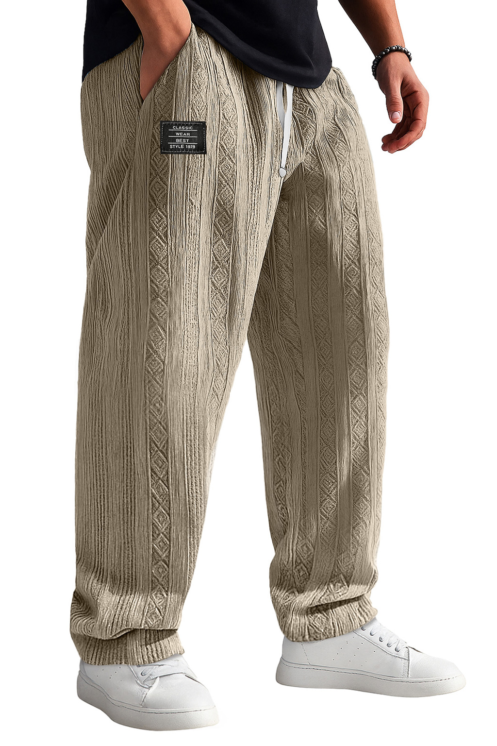 Men's Retro Jacquard Texture Embroidered Logo Casual Comfortable Trousers
