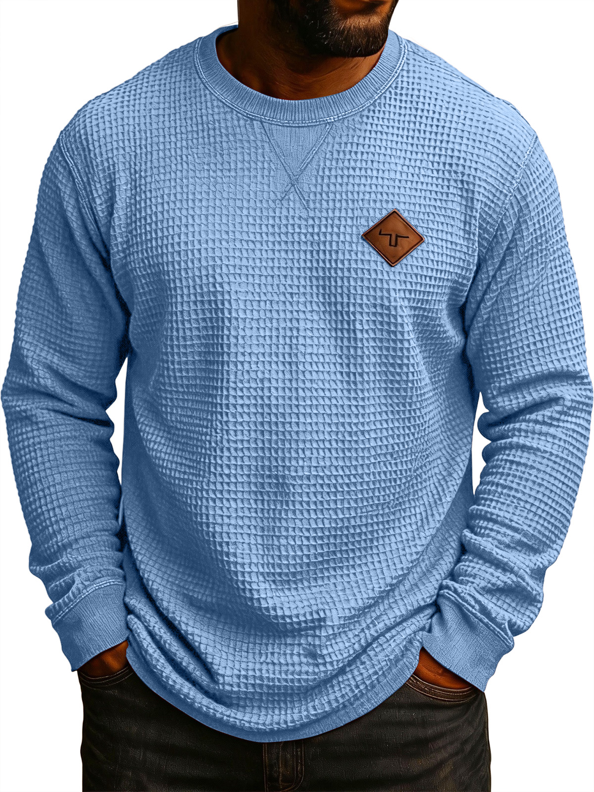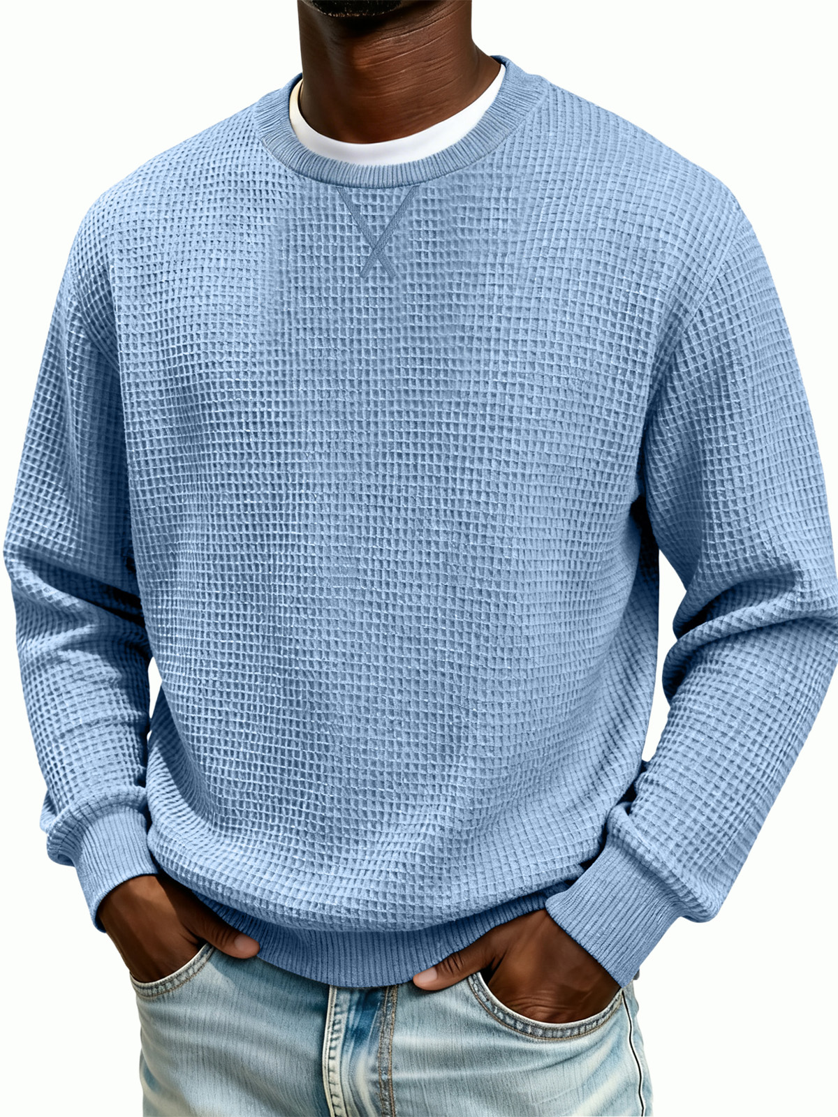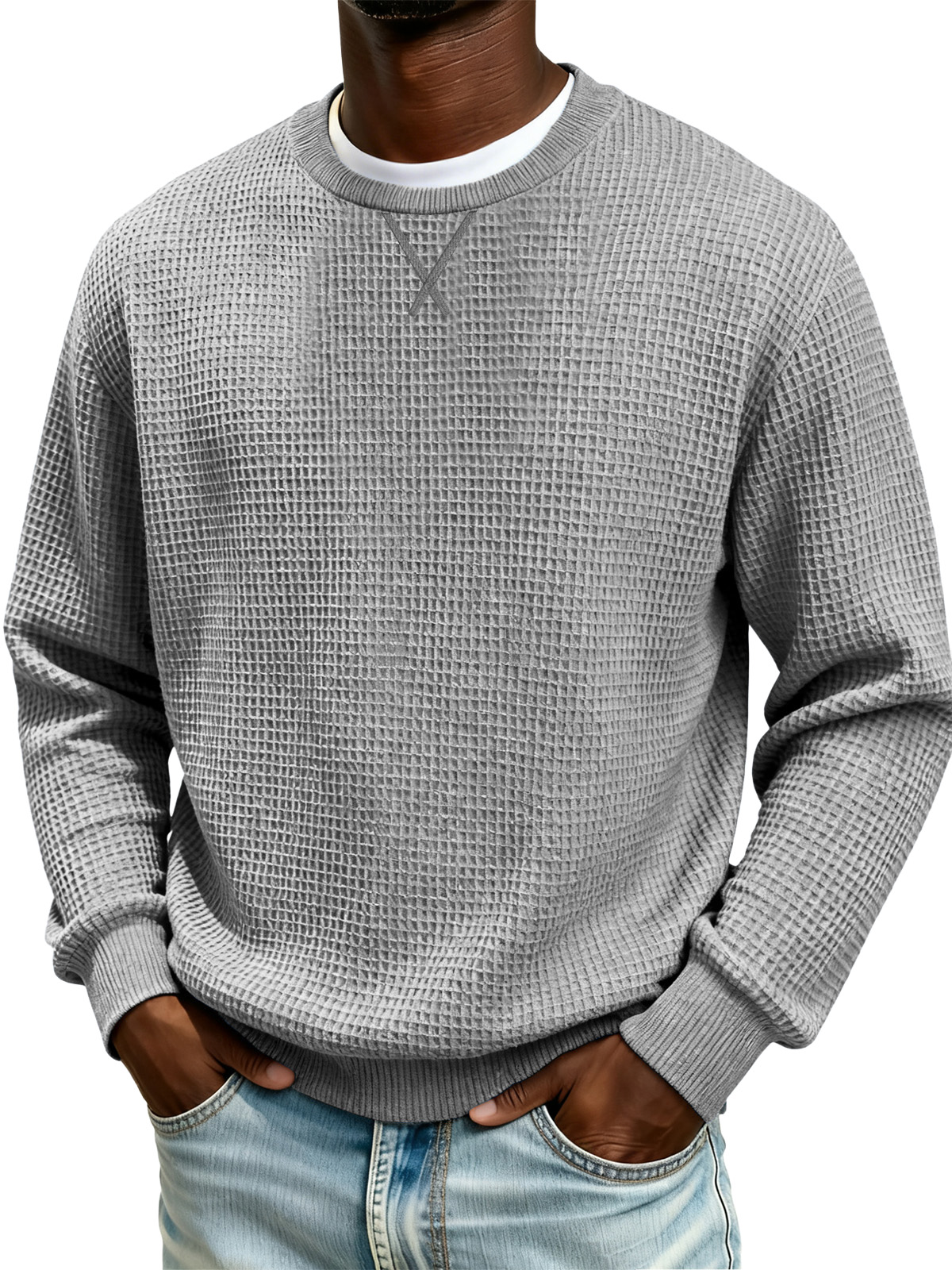 Men's Fashion Casual Crew Neck Waffle Knit Pullover