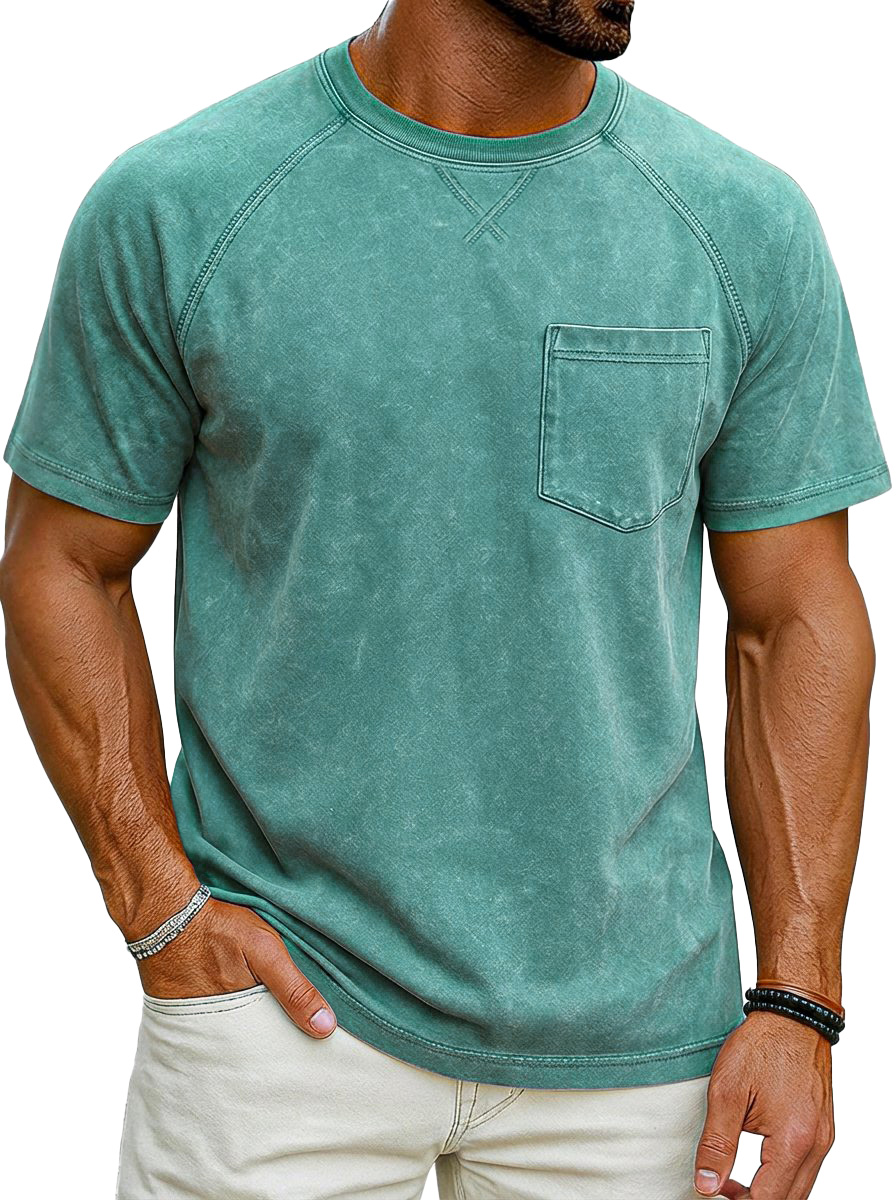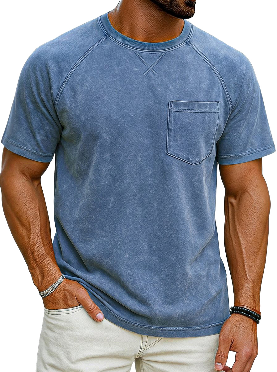 Vintage distressed raglan sleeve short-sleeved crew neck T-shirt