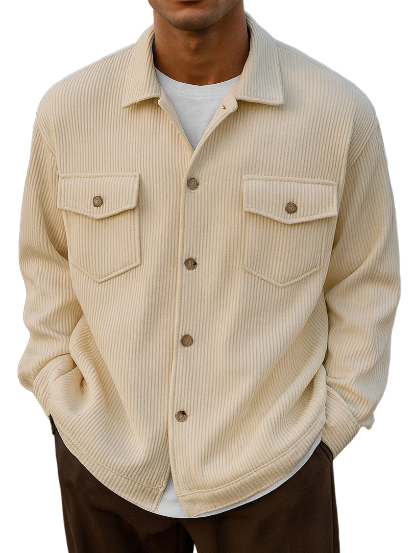 Men's vintage corduroy comfortable loose-fitting button-down long-sleeved shirt