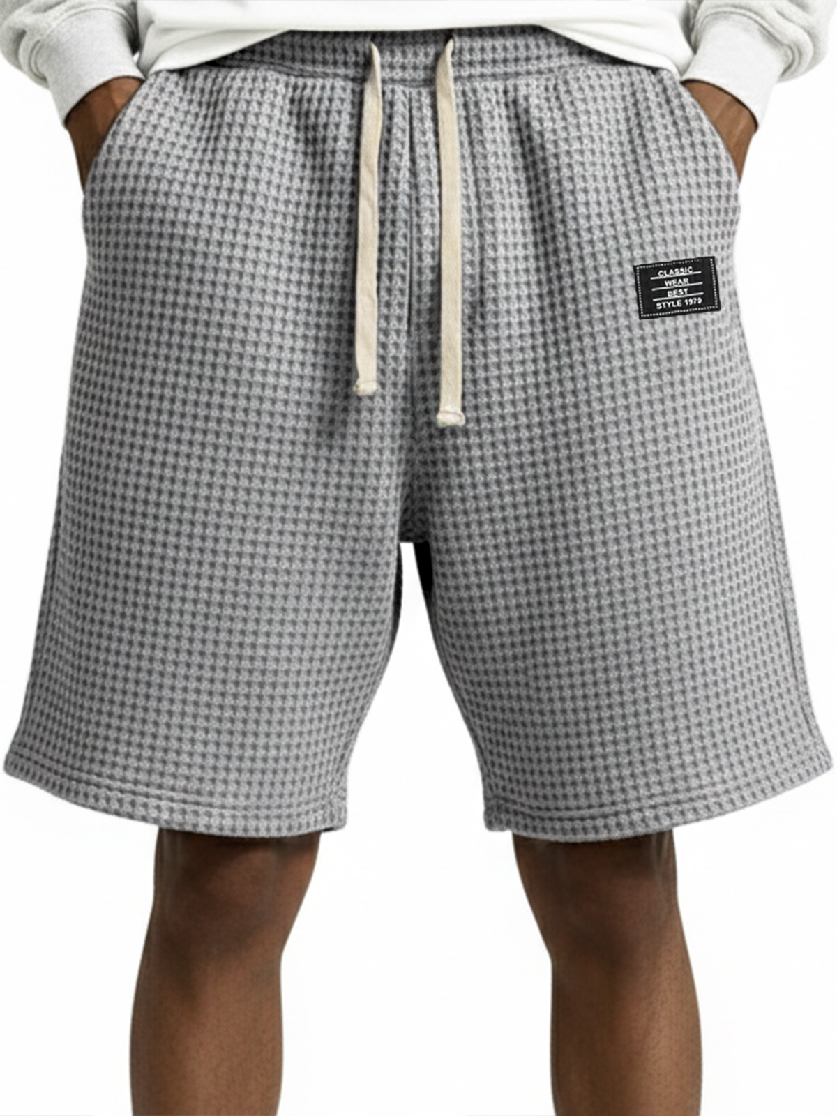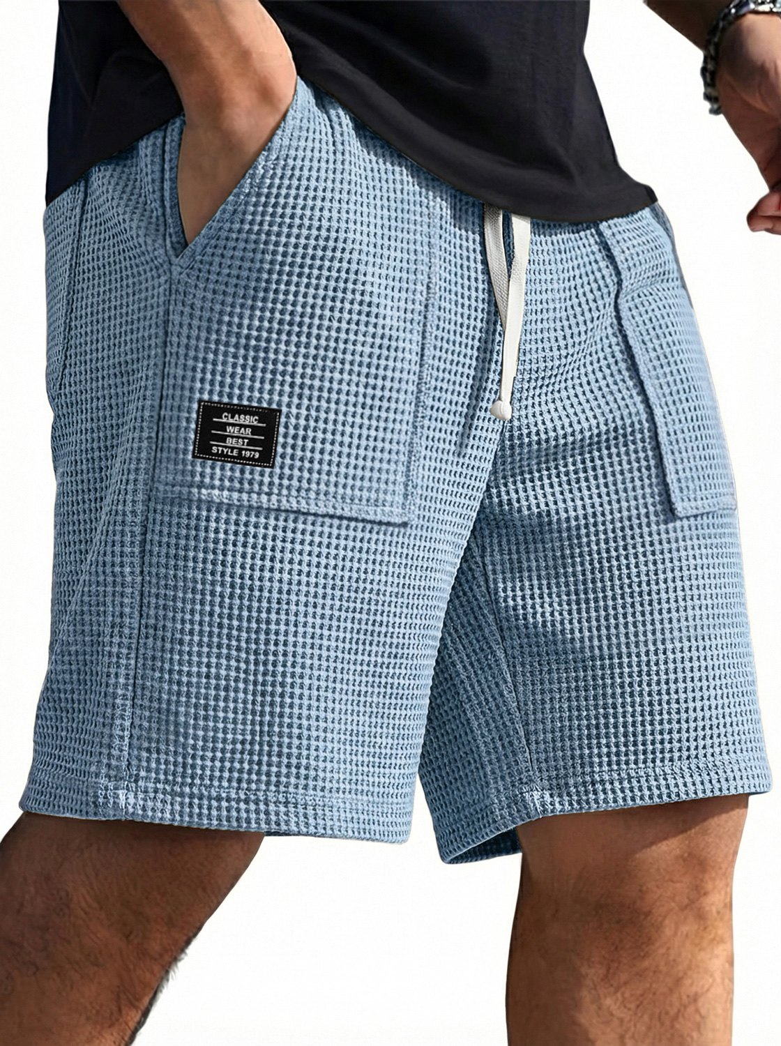 Waffle Embroidered Drawstring Shorts