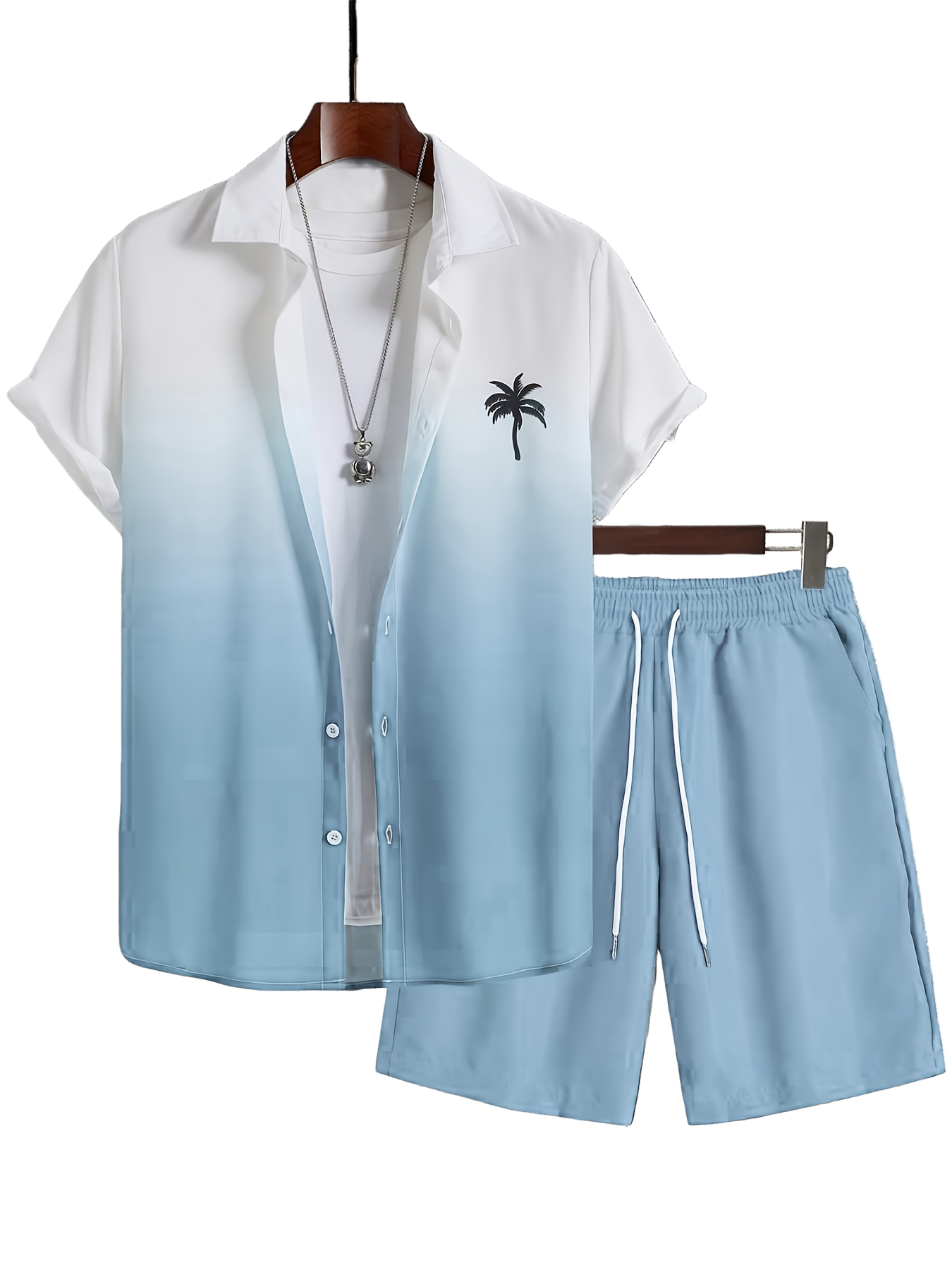 Men's Vacation Casual Gradient Coconut Tree Short-Sleeve Shirt and Pants OOTD