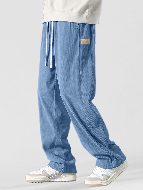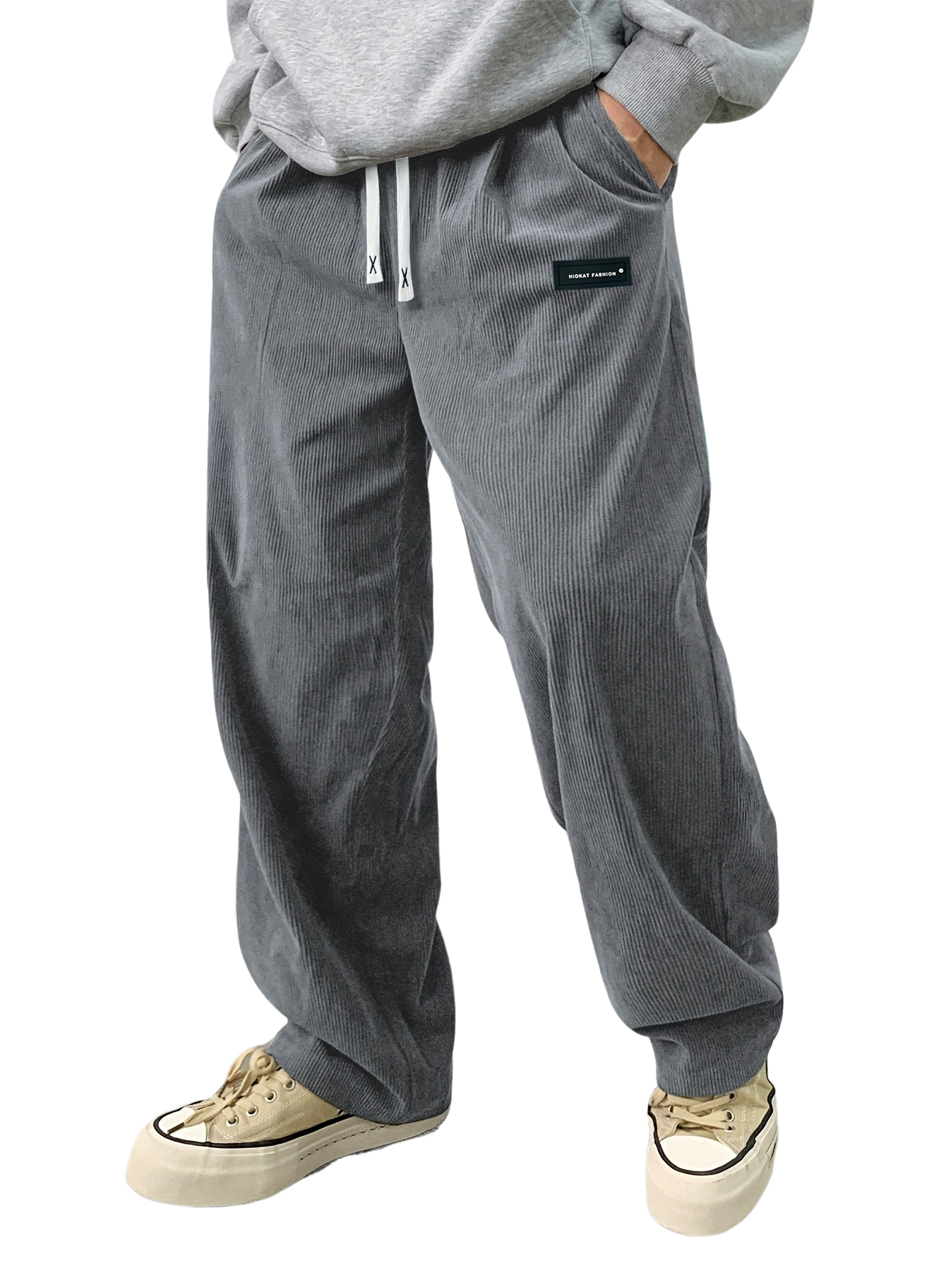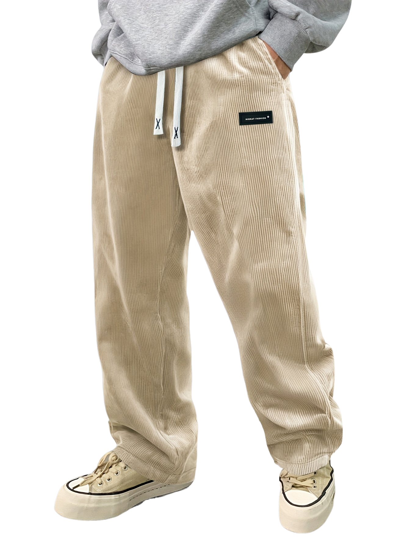 Men's Stylish Everyday Corduroy Ribbed Fabric Pants With Loose-fitting Drawstring Waist And Embroidered Logo