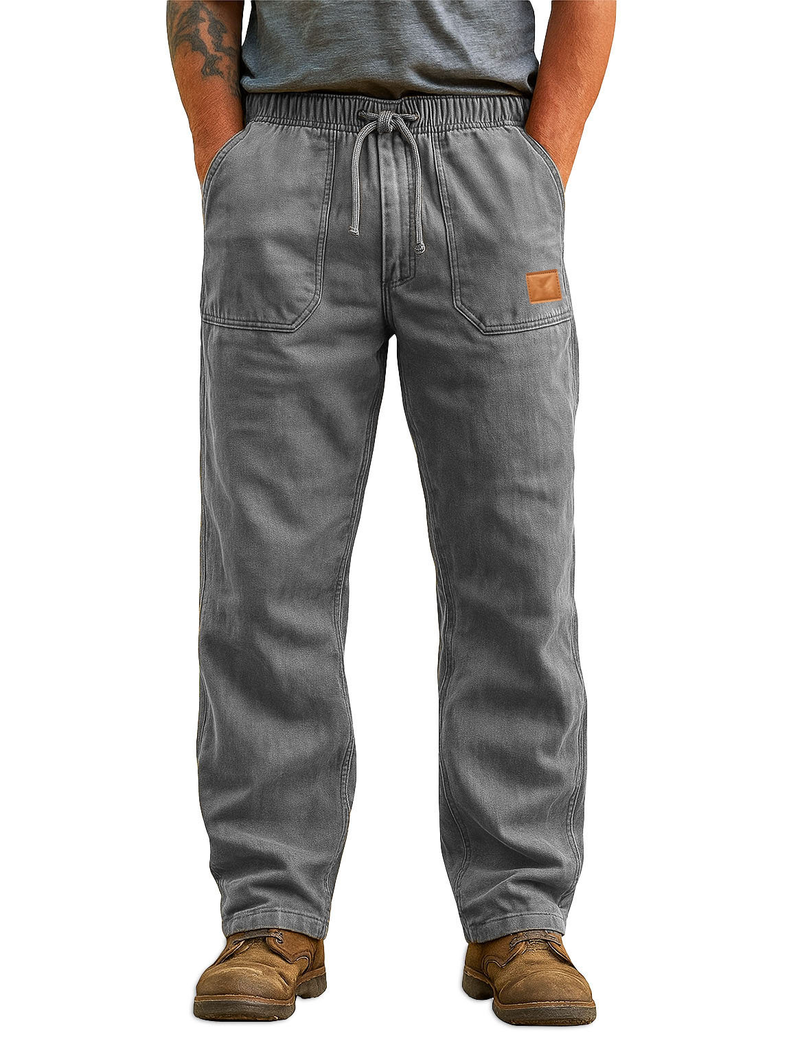 Men's Fashion Retro Outdoor Workwear Elastic Waistband Leather Pocket Trousers
