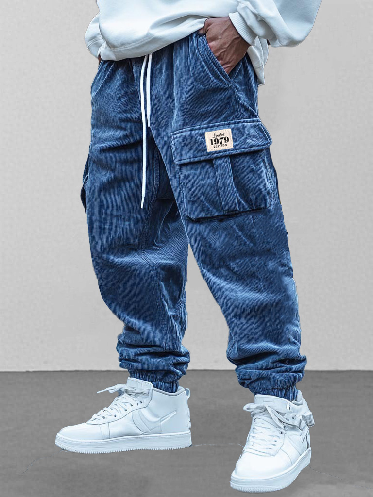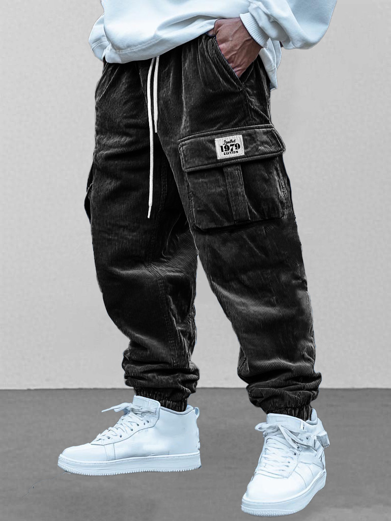 Men's Fashion Vintage Sports Corduroy Fabric Logo Embroidered Trousers