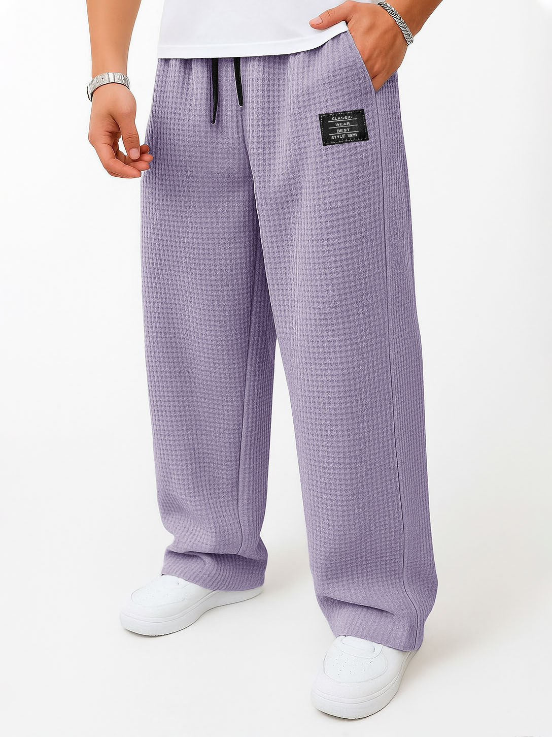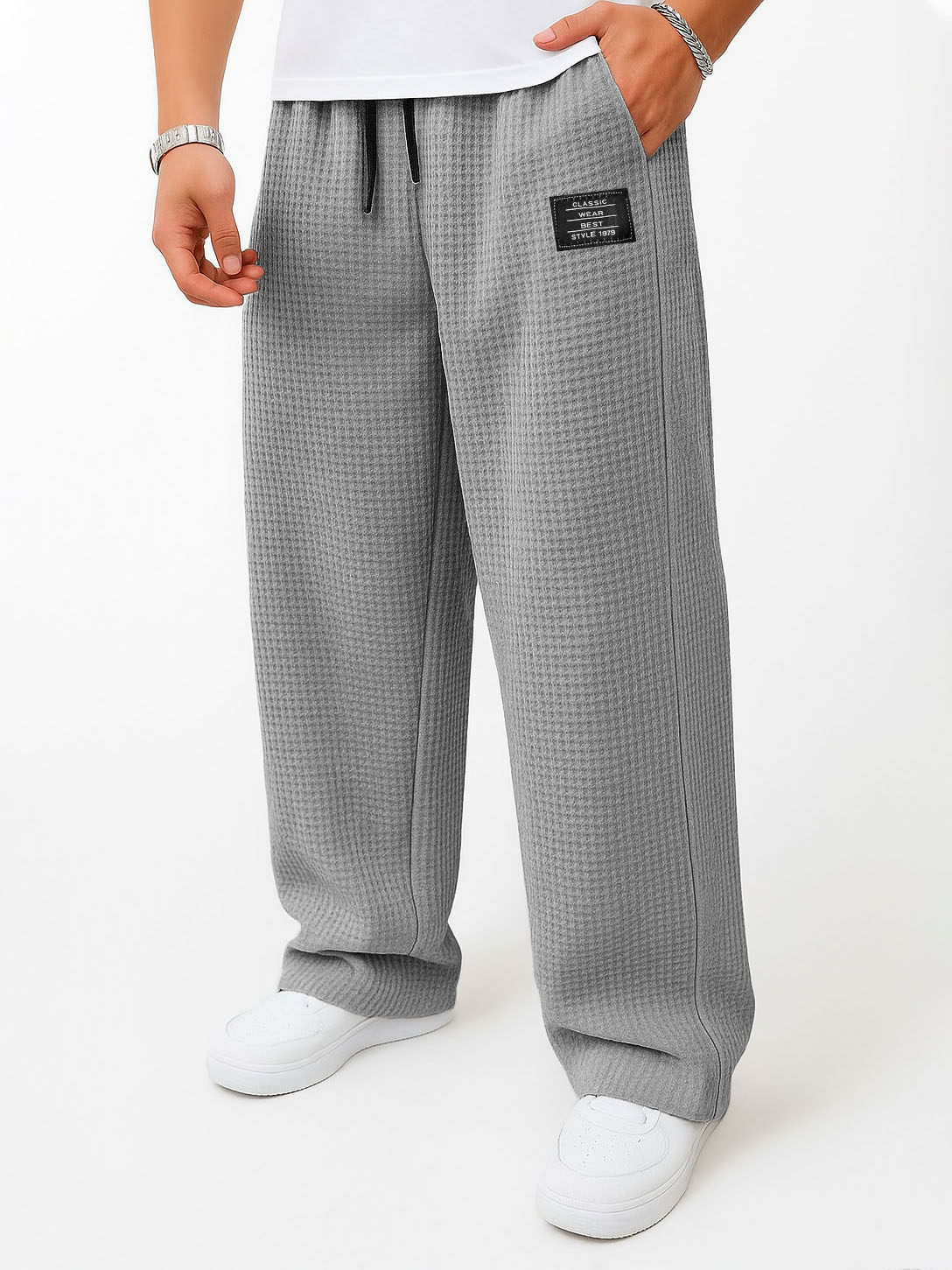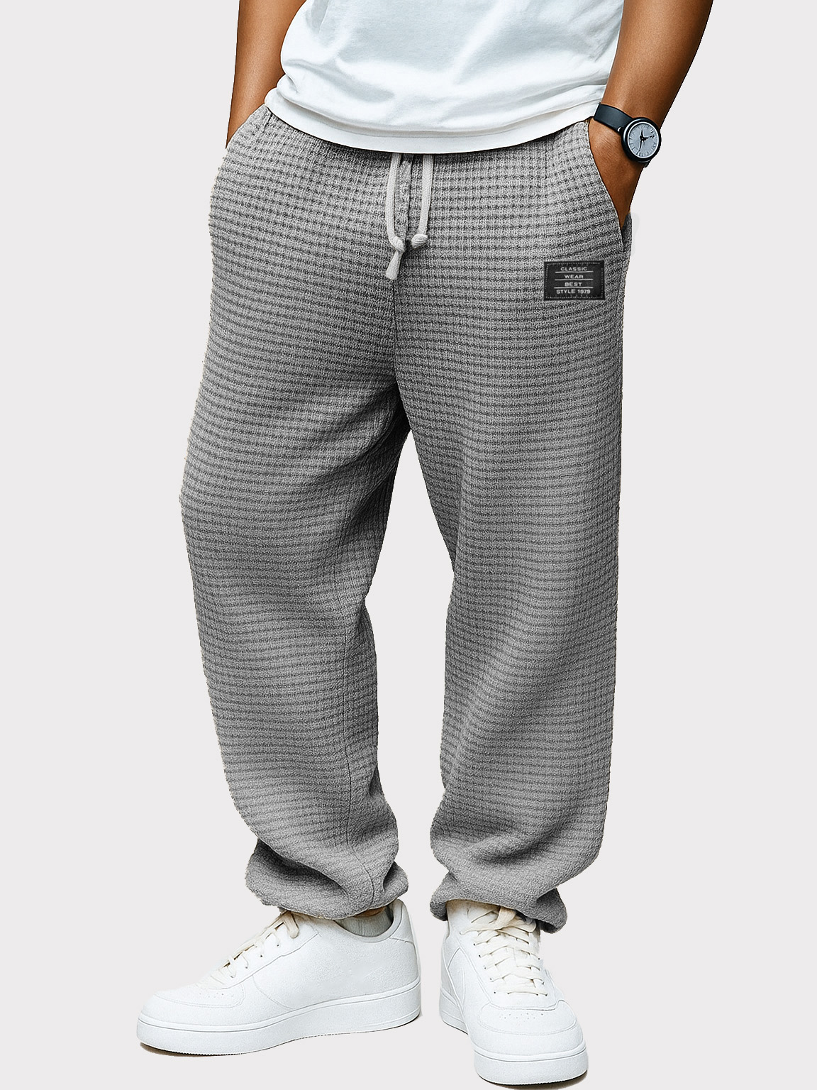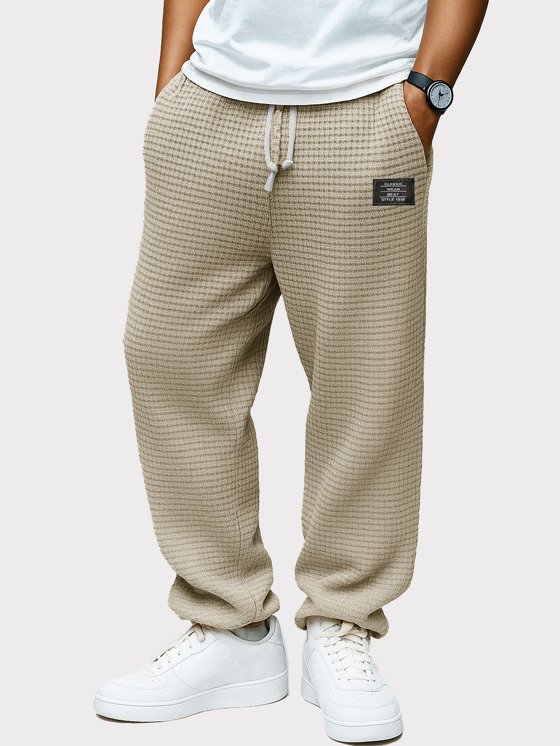 Men's Stylish Everyday Waffle Fabric Pants With Loose-fitting Drawstring Waist And Embroidered Logo