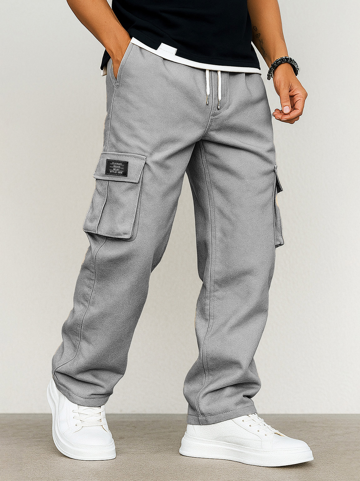 Men's Stylish Retro Outdoor Sports Embroidered Logo Pocket Trousers