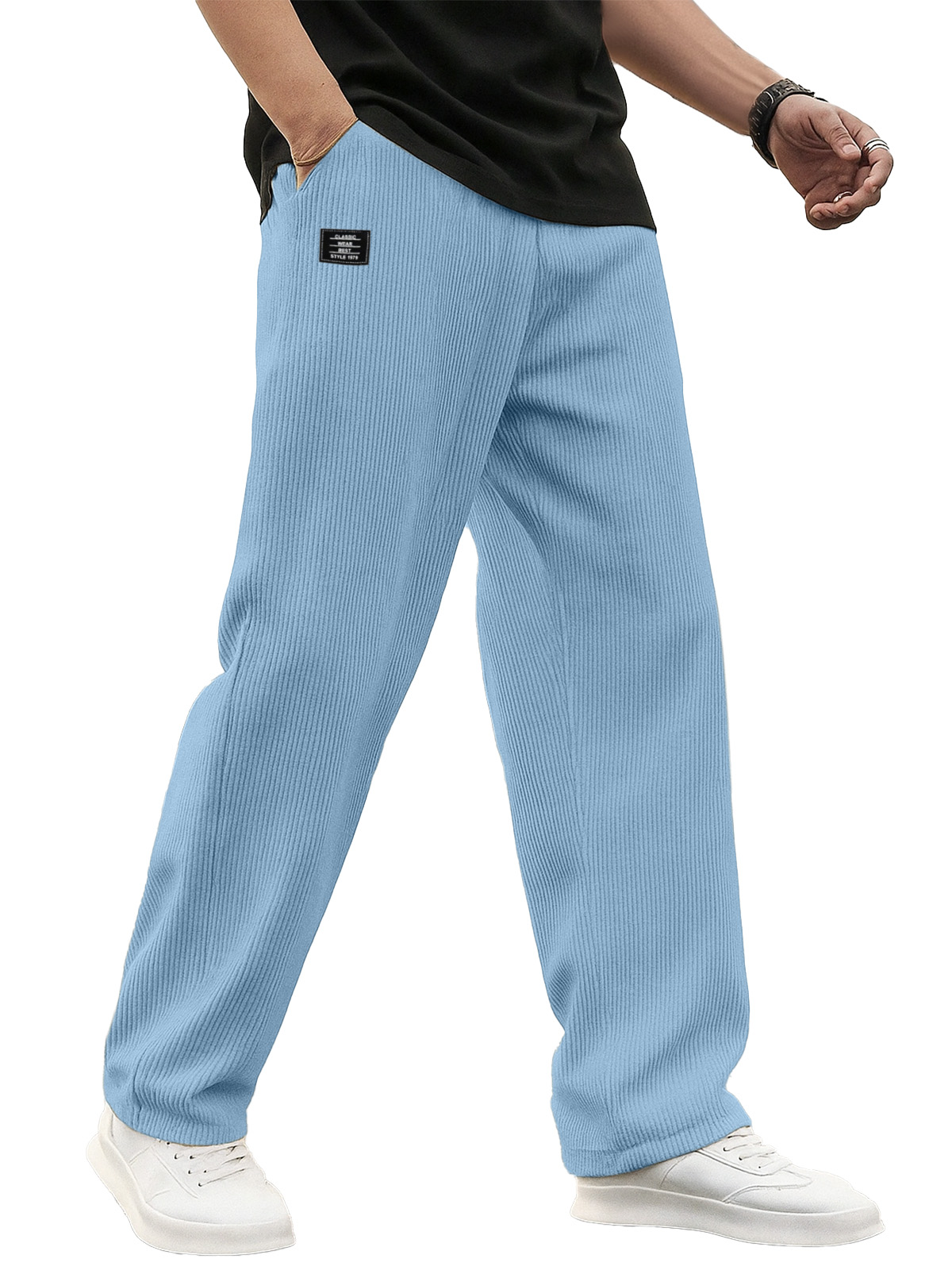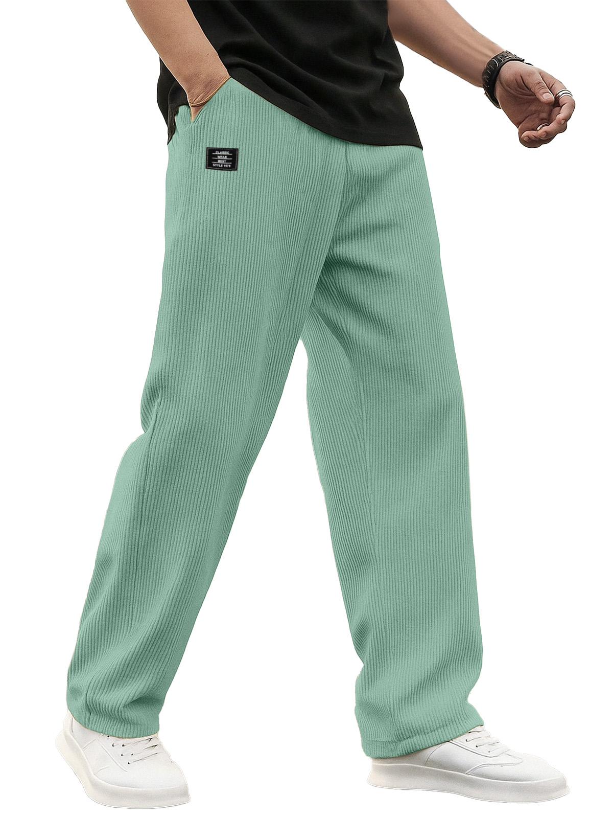 Men's Casual Solid Color Comfortable Vertical Pit Strip Logo Design Simple Trousers