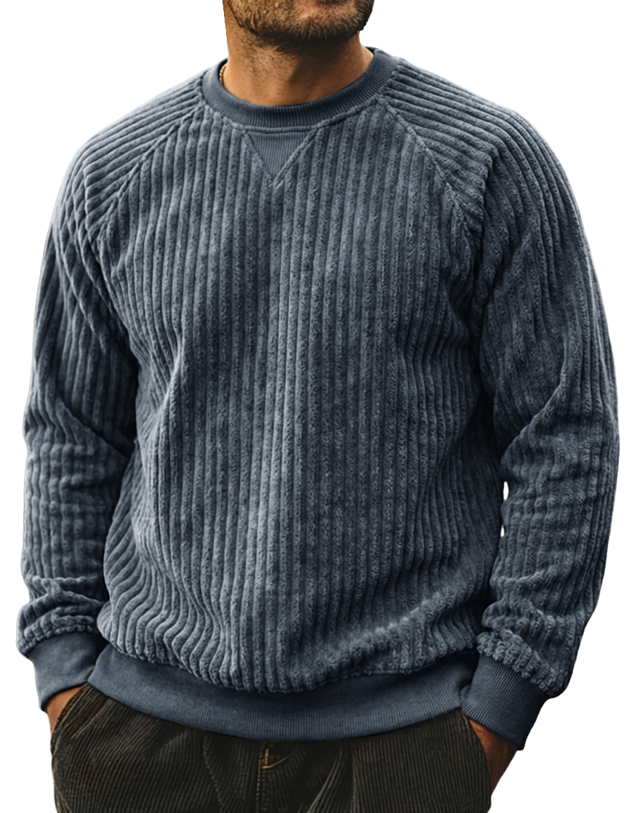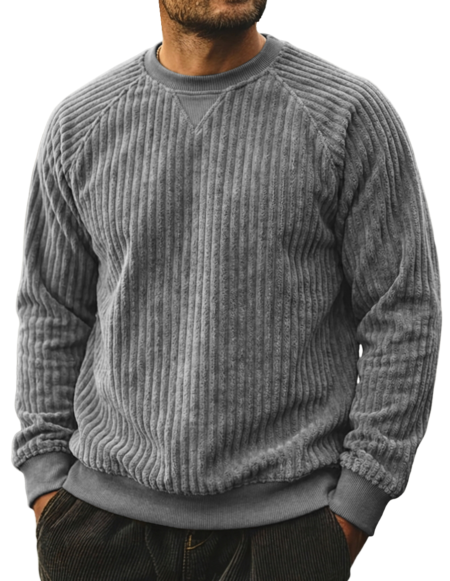 Men's Round-neck Corduroy Sweatshirt With Vertical Stripe Texture And Vintage Style