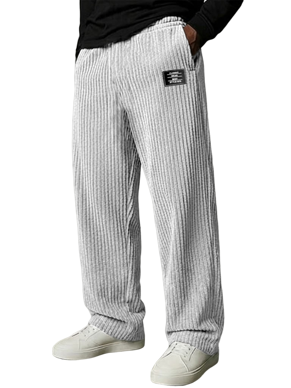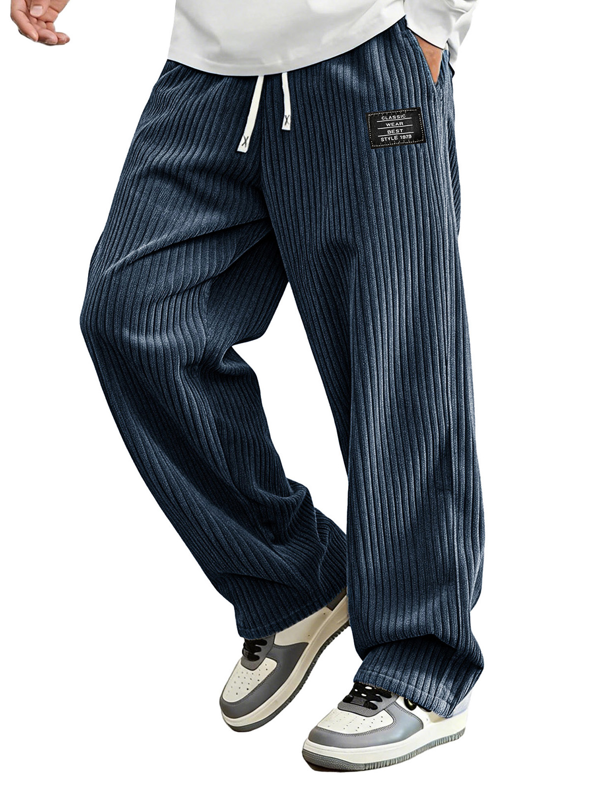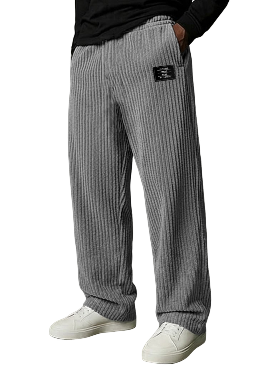 Men's Stylish Vertical Striped Corduroy Trousers with Embroidered Label