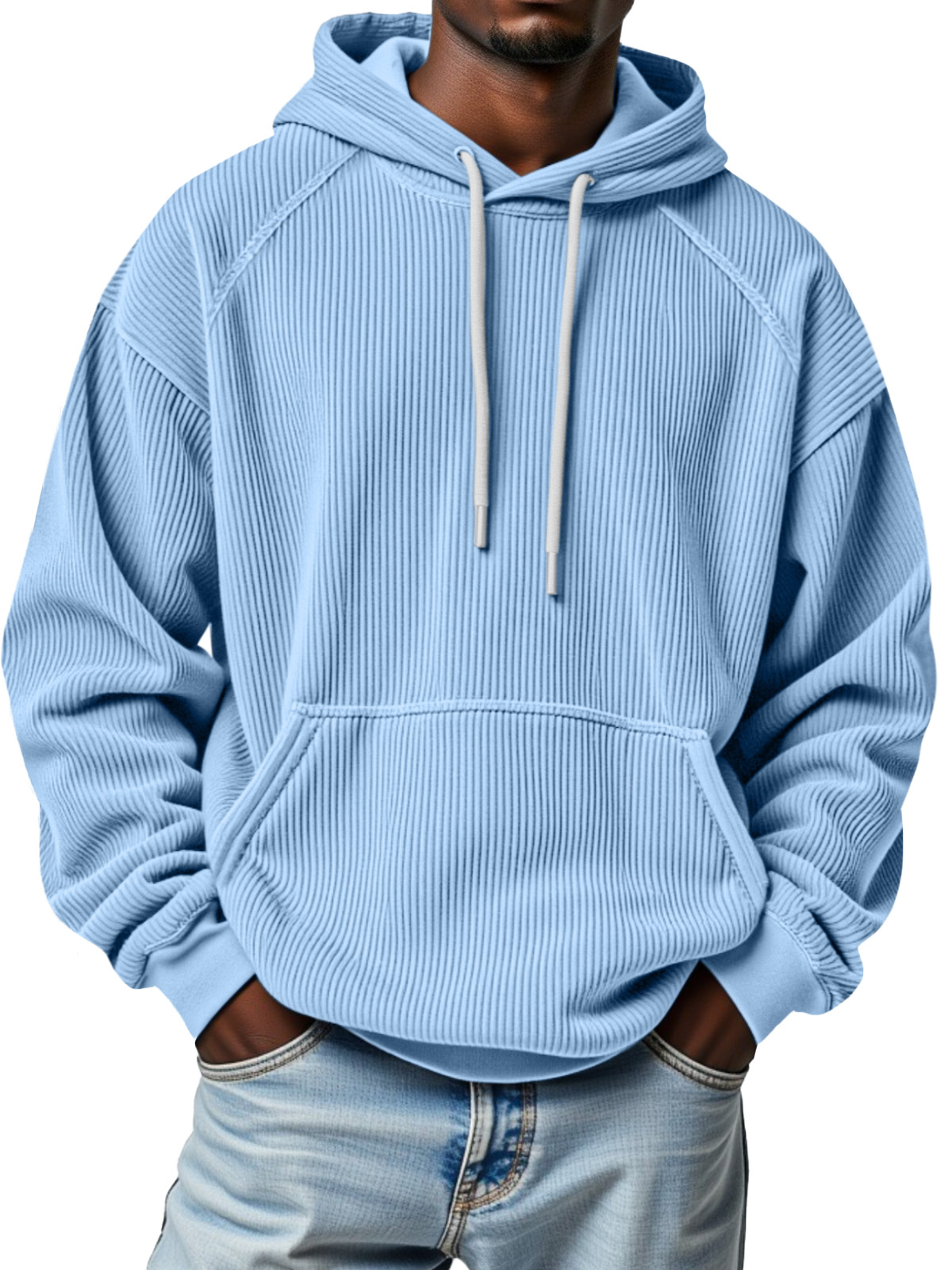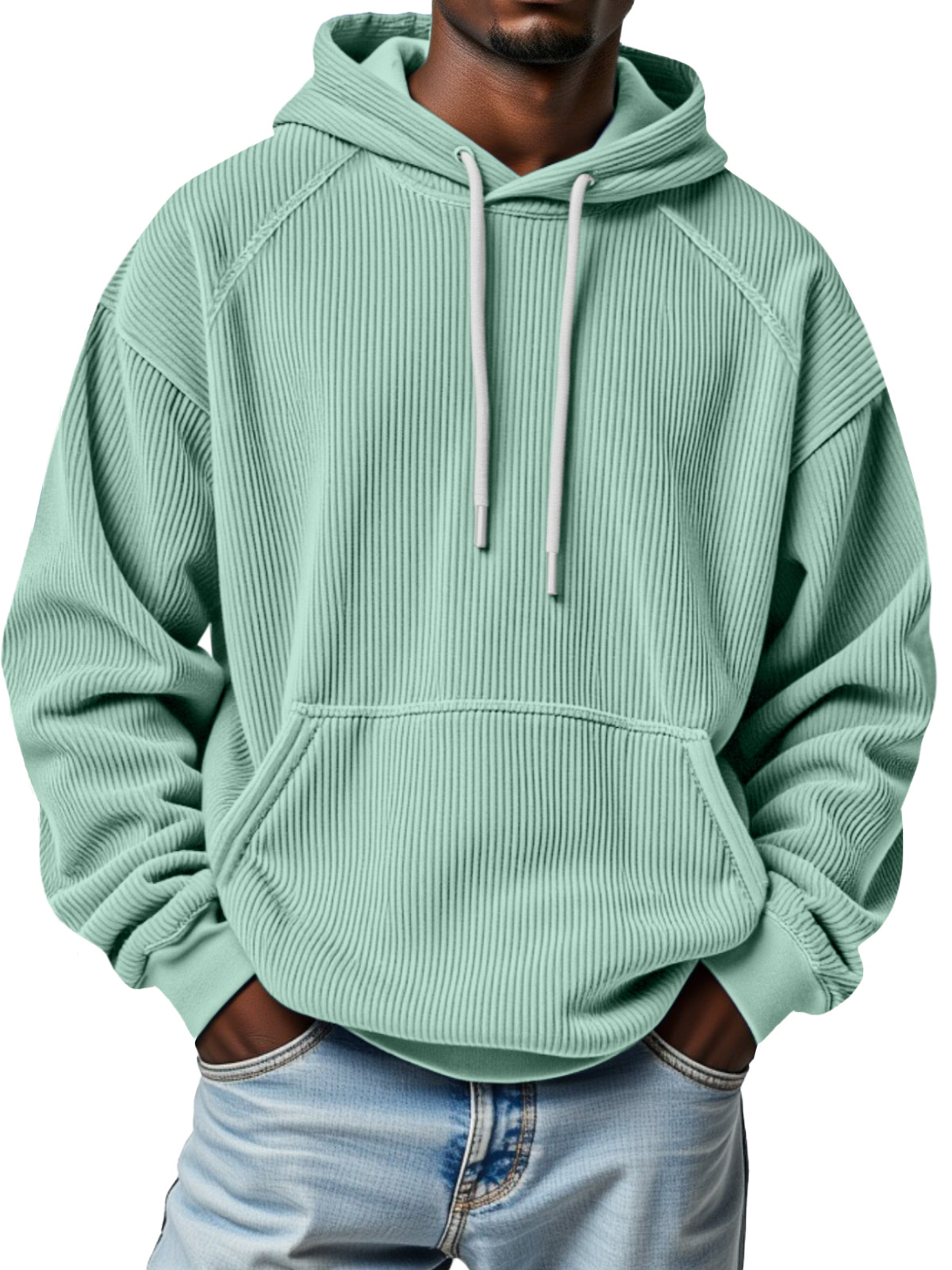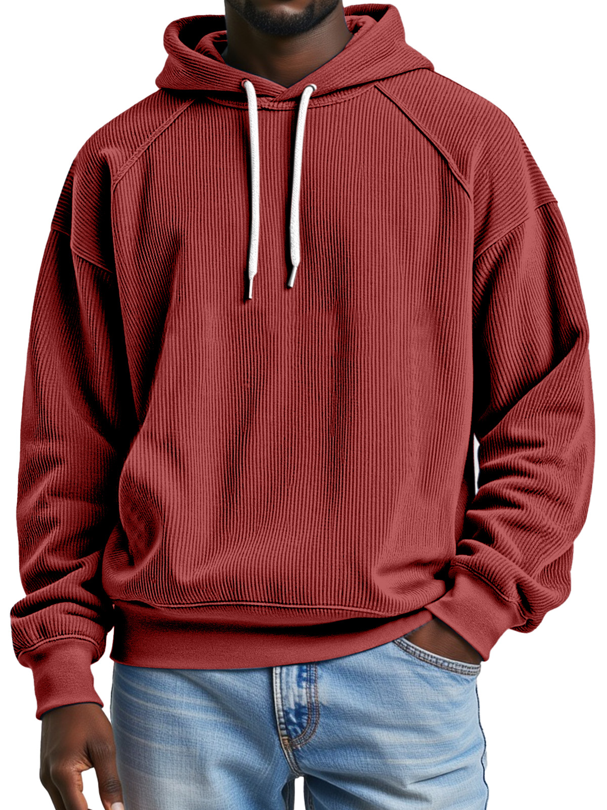 Men's Simple And Comfortable Vertical Pit Striped Loose Hooded Sweatshirt