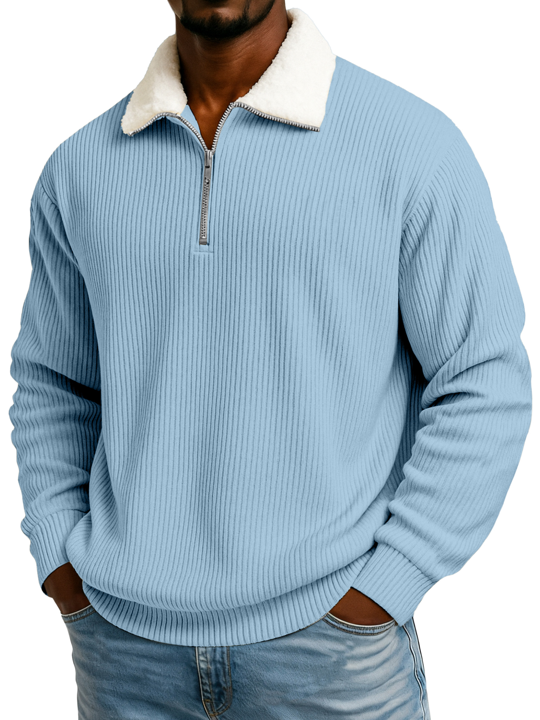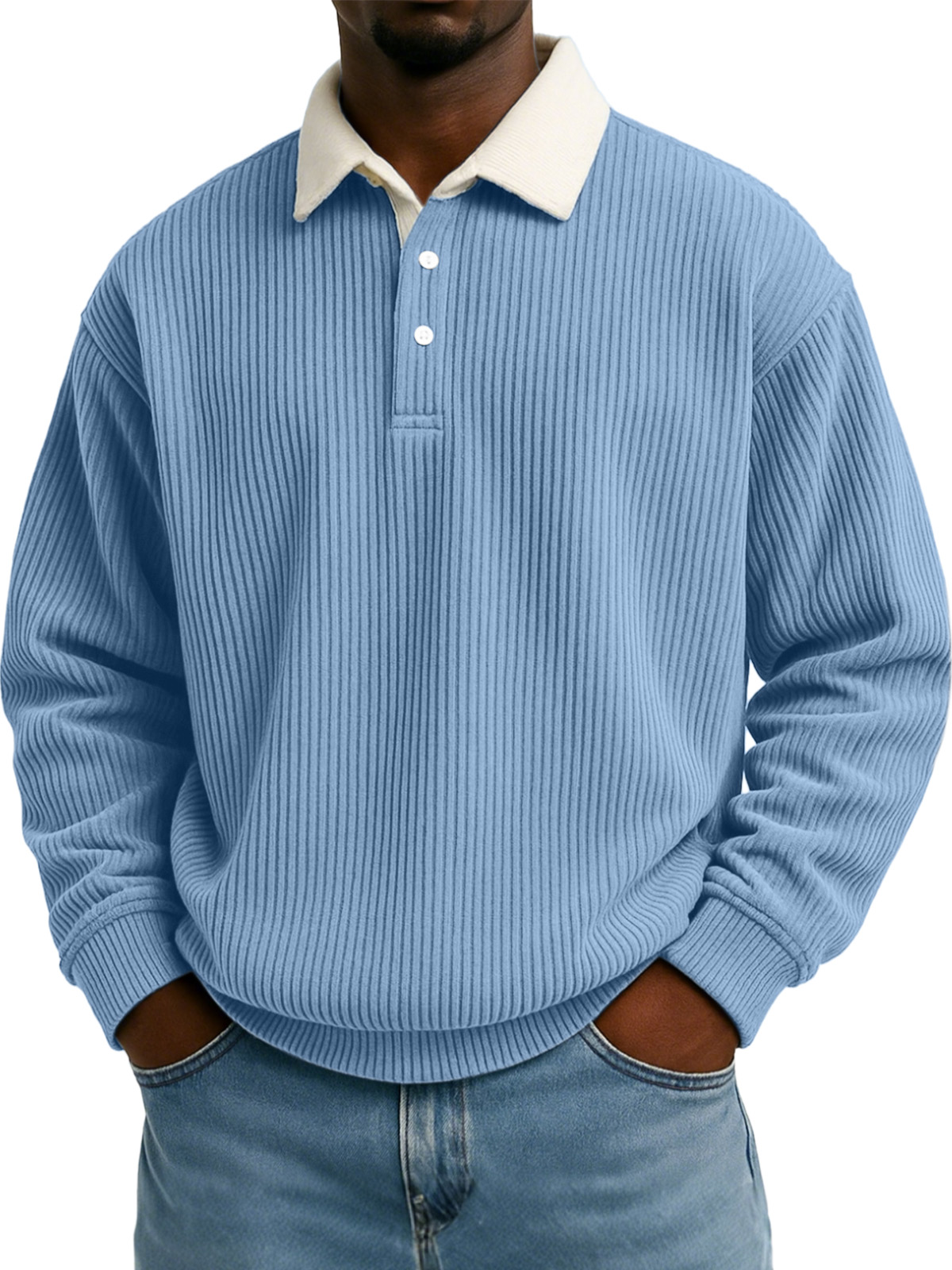 Men's Solid Color Vertical Strip Texture Contrast Color Long Sleeve Lapel Sweatshirt